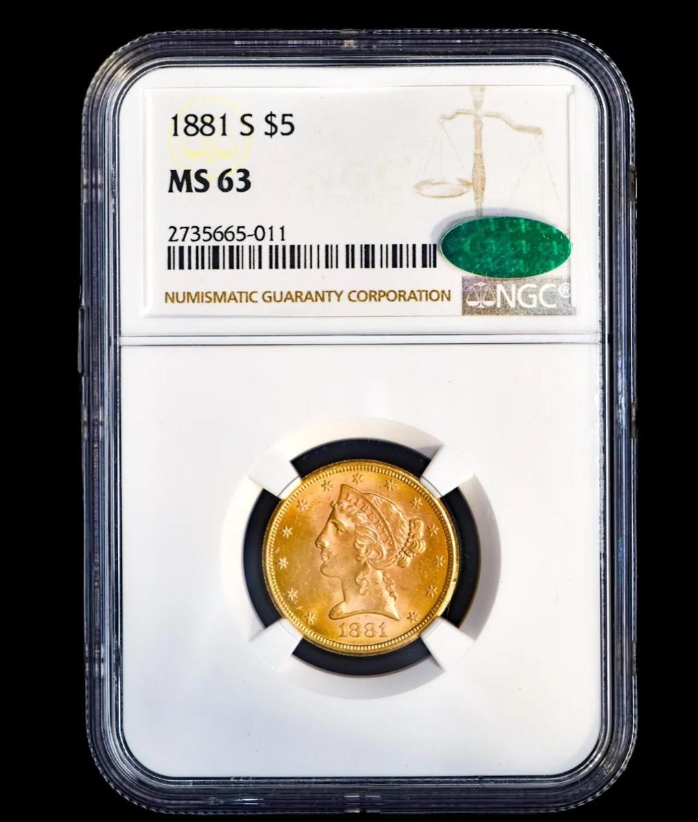 1881-S $5 GOLD LIBERTY NGC MS-63 CAC HALF EAGLE COIN UNCIRCULATED