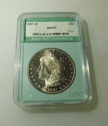 1881-S Morgan Silver Dollar Graded by NTC MS65