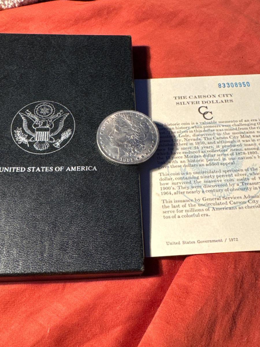 1882 CARSON CITY MORGAN W BOX AND COA XVF
