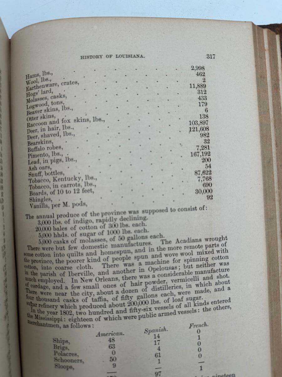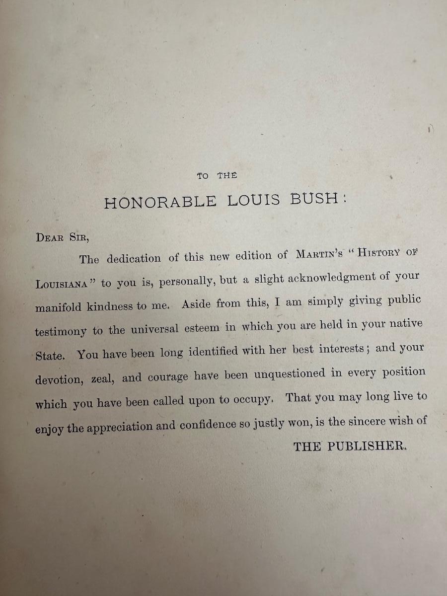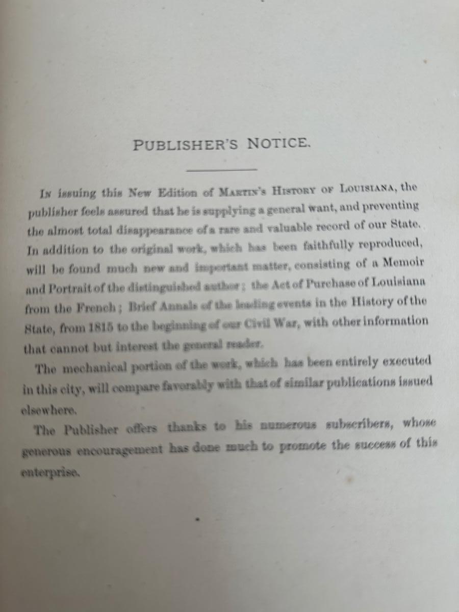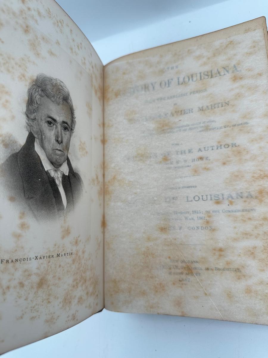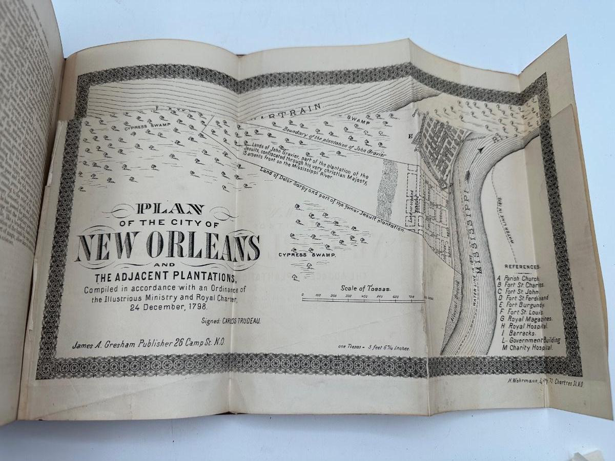 Rare 1882 New Orleans edition of François Xavier Martin’s History of Louisiana. Features large fold-out map of New Orleans & plantations (1798).