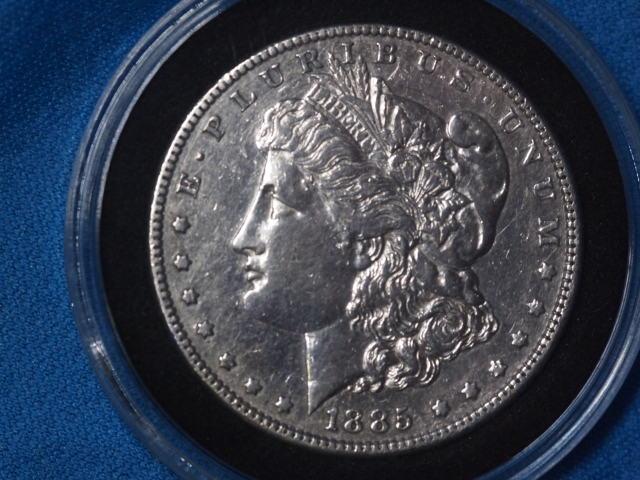 1885 P Uncirculated Morgan In original Mint Capsule Very collectable Uncirculated Silver Dollar Value 95 to 675