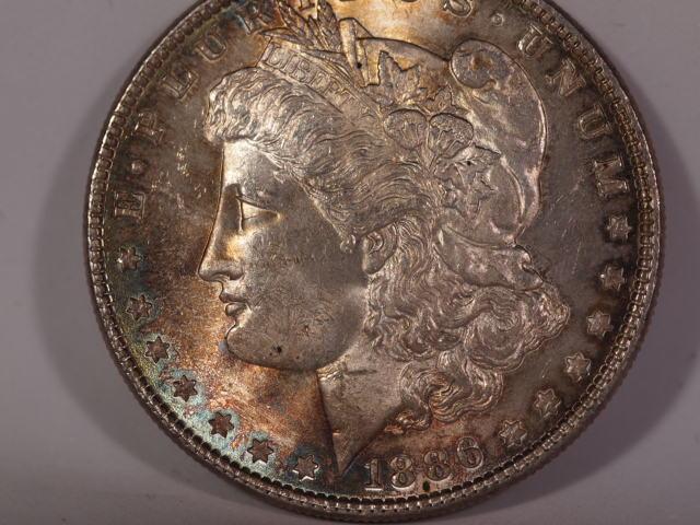 1886 P Morgan Silver Dollar Beautiful Toning on this one. The Toning and Finish on this Coin make it what it is