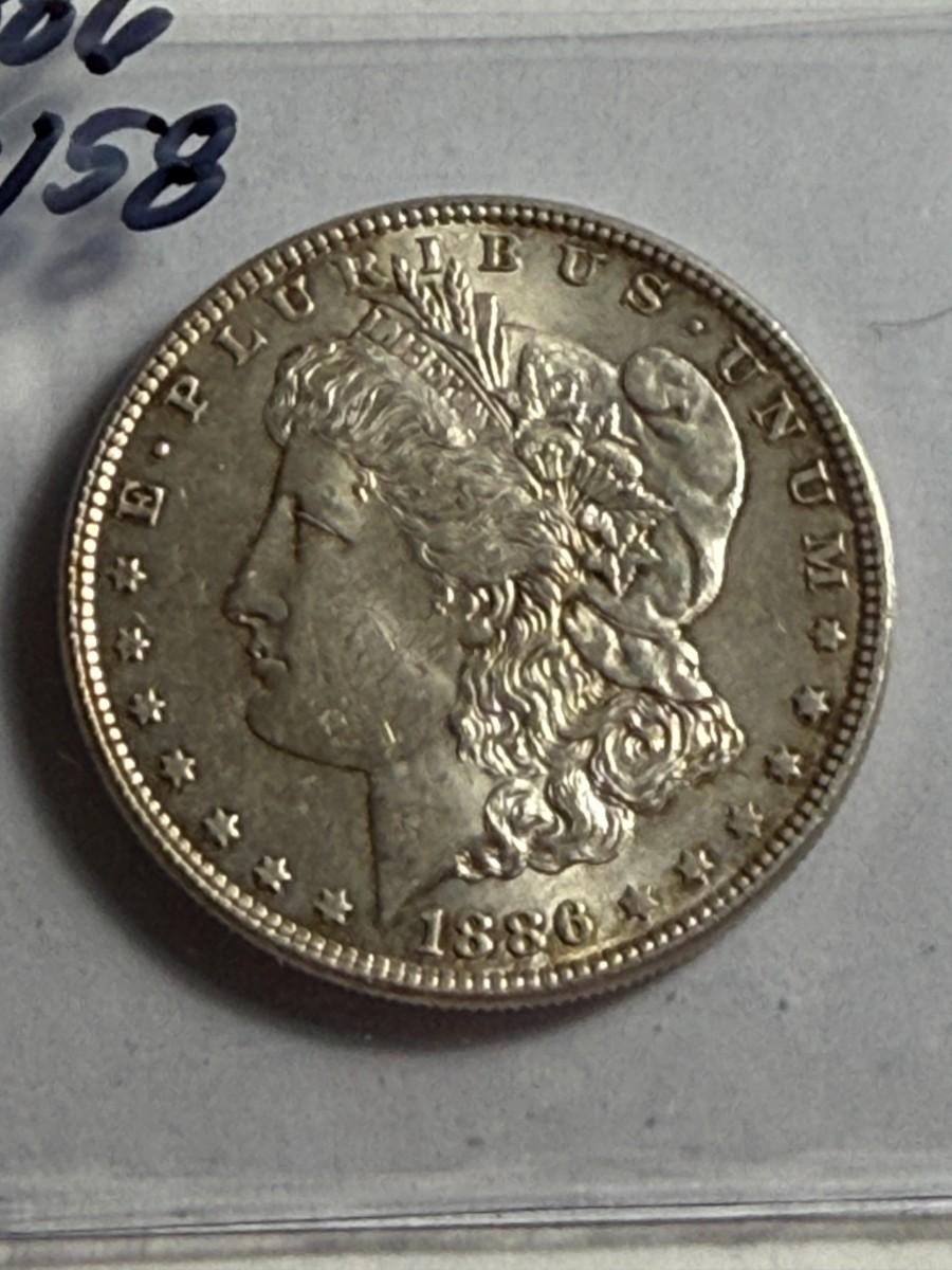 1886-P AU58 QUALITY MORGAN SILVER DOLLAR AS PICTURED COIN #7. $5 DOMESTIC SHIPPING,