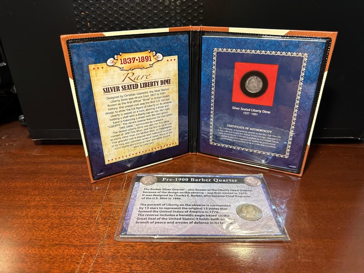 1888 SILVER SEATED LIBERTY DIME AND 1897 BARBER SILVER QUARTER
