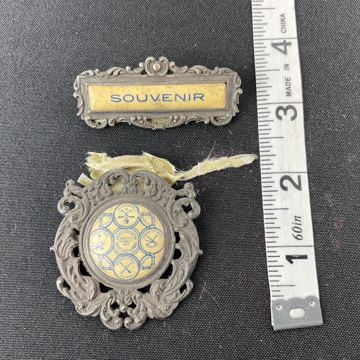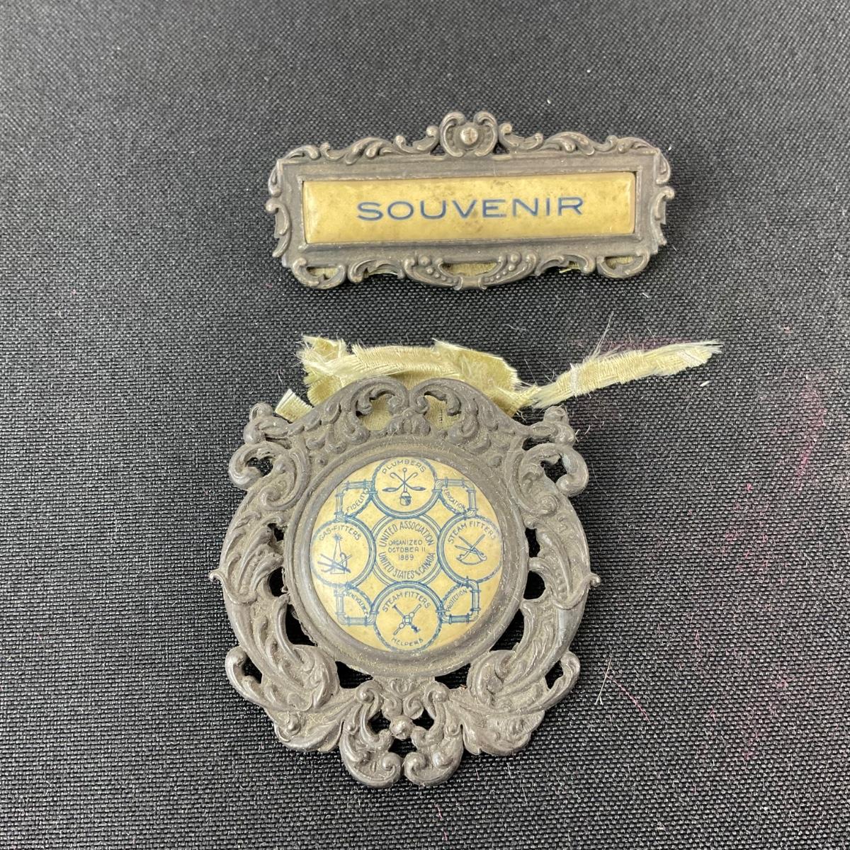 One united association steam fitters and plumbers ribbon. The ribbon is falling apart really bad and has a lot of damage. Please see photos for details and condition. Any condition statement is given as a courtesy to a client, is an opinion, and should not be treated as a statement of fact. Reference to condition written, oral or within a condition report shall not be regarded as a full account of condition and may not include all defects, alterations, or restorations. Absence of a condition report does not imply a lot is flawless or lacking imperfections or damage. Katherine’s Auction & Appraisal Service shall have no responsibility for any error or omission. Returns shall not be accepted on the basis of condition. ::: Shipping is available on this lot. If you require shipping you must let us know at the close of the auction. We will coordinate with you after the item has been won. Shipping fees will include insurance up to or exceeding the value of all items being mailed. If you have any questions regarding this lot please contact the auctioneer either via this website, by direct email or by phone. PICK UP TIMES and other important information can be found in the TERMS and DESCRIPTION of the auction. Please take a look for pertinent information. Thanks!