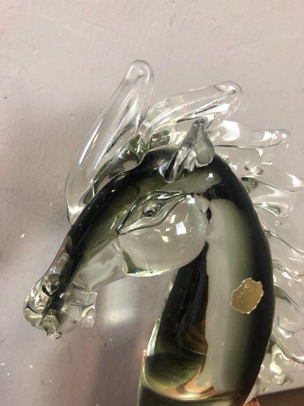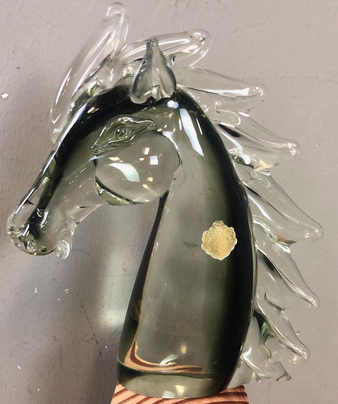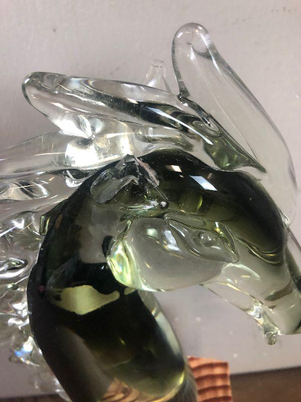Hand Blown, Smoked Glass, Left side ear is broken, but he still deserved a new stable. 10-1/2 Tall