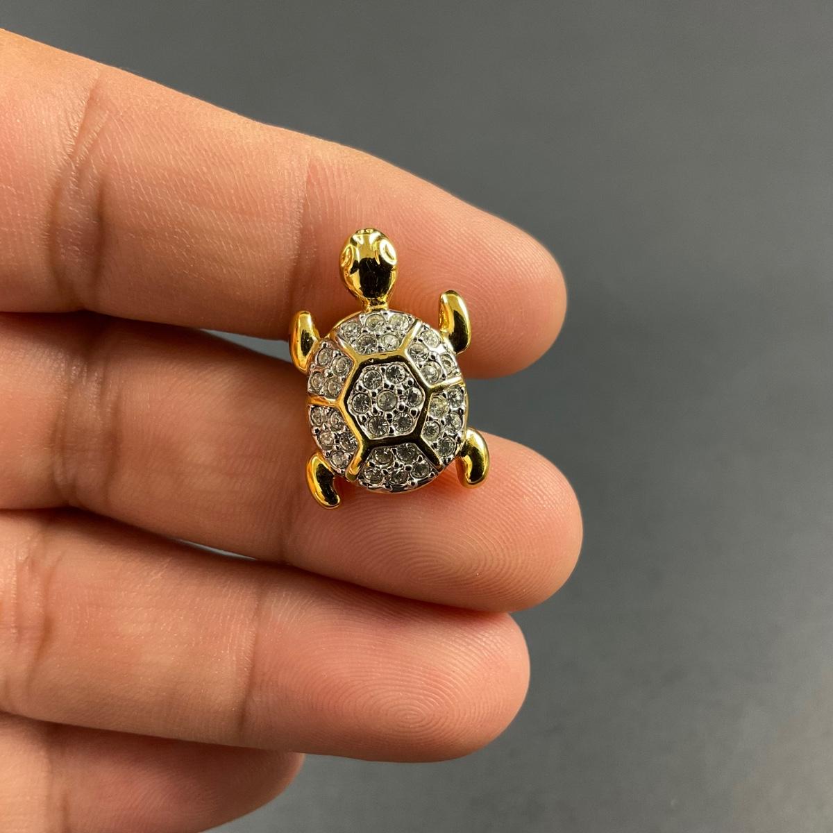 -189- SWAROVSKI | Crystal Turtle Lapel Pin | Marked