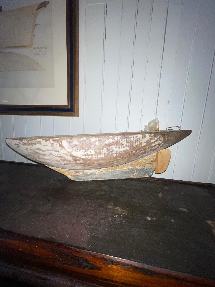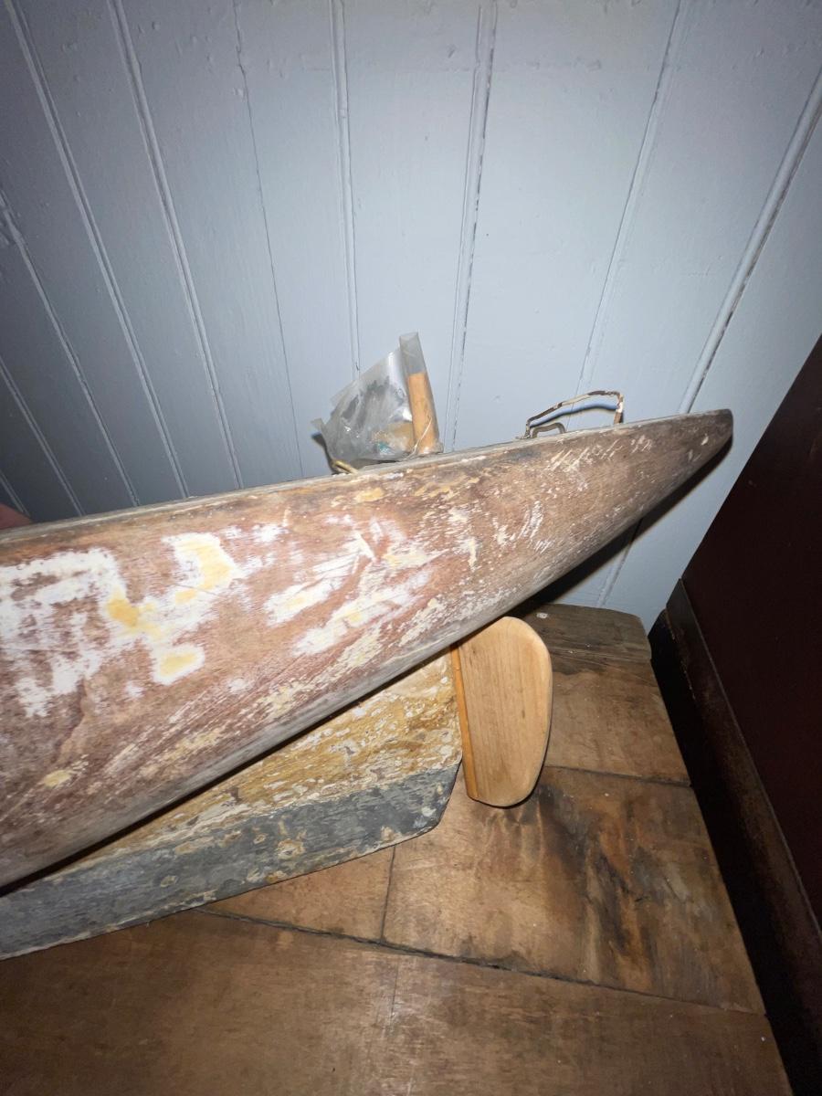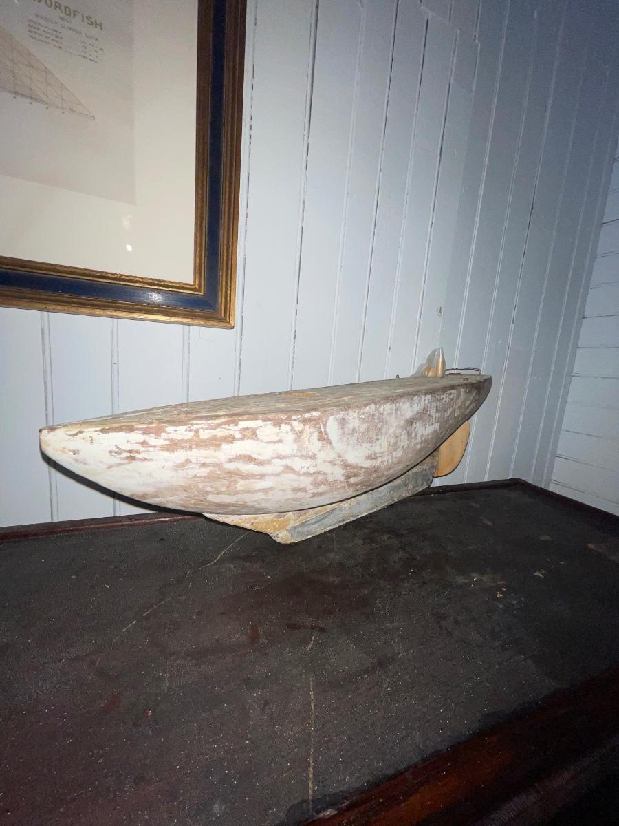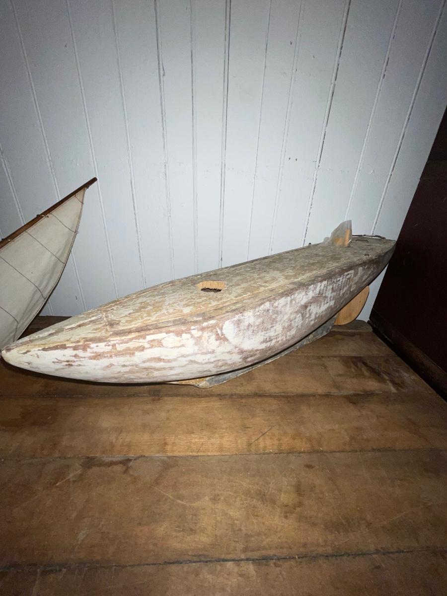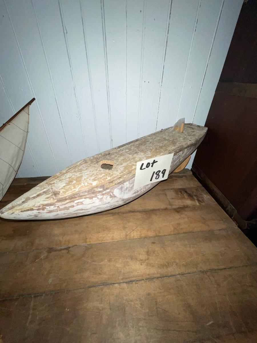 Vintage Wooden Pond Yacht Hull. Appears to have been a start of a restoration project with some new parts please see pictures for details.