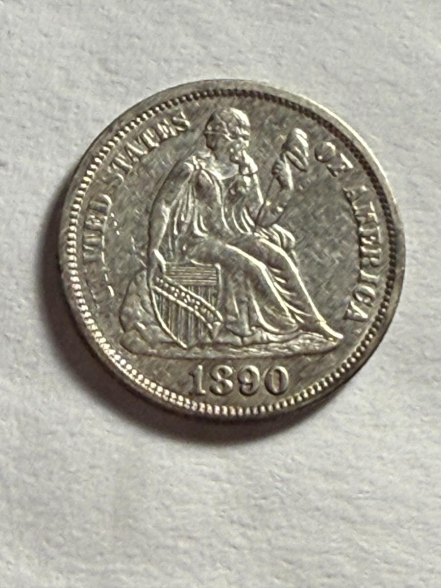 1890 AU CONDITION CLEANED CONDITION LIBERTY SEATED DIME TYPE COIN AS PICTURED. $5 DOMESTIC SHIPPING.
