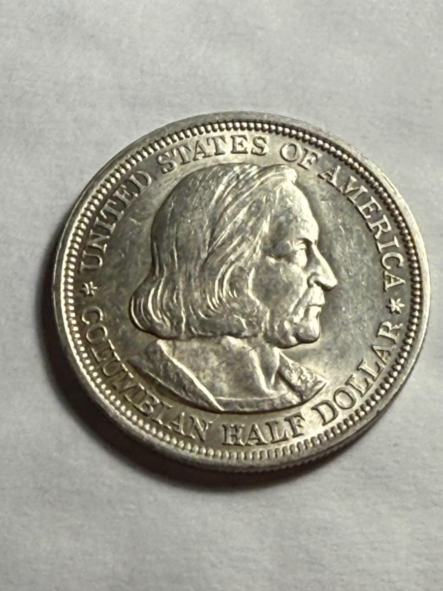 1892 CHOICE AU COLUMBIAN EXPOSITION SILVER HALF DOLLAR AS PICTURED. $5 DOMESTIC SHIPPING.