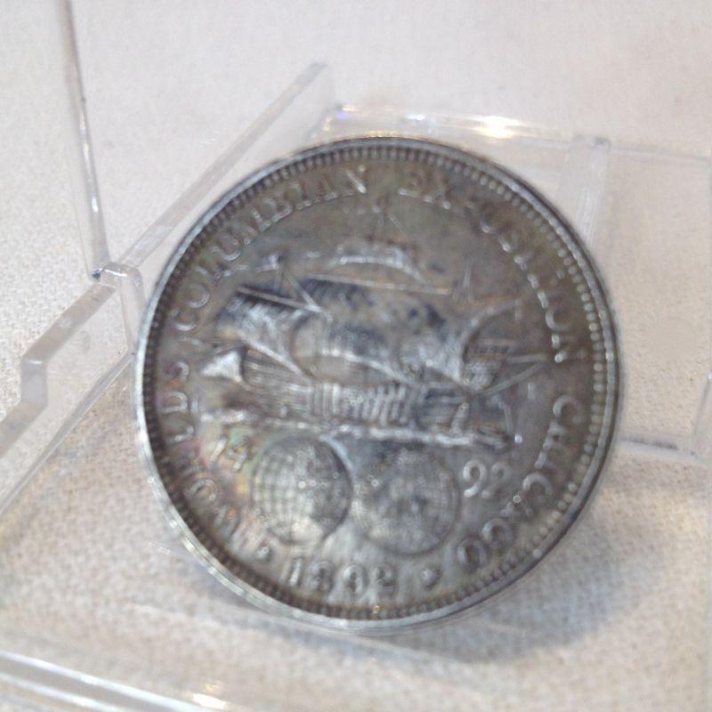 This lot is a 1892 Columbian Exposition Half Dollar. It has not been appraised for condition and we are not numismatics but would classify this as slightly less than good. The opening bid is $15.00.