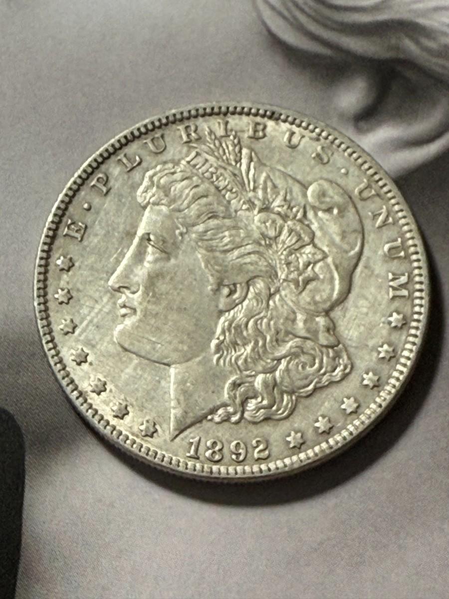 1892-P VERY FINE CONDITION LIGHTLY CLEANED MORGAN SILVER DOLLAR COIN AS PICTURED. $5 DOMESTIC SHIPPING.