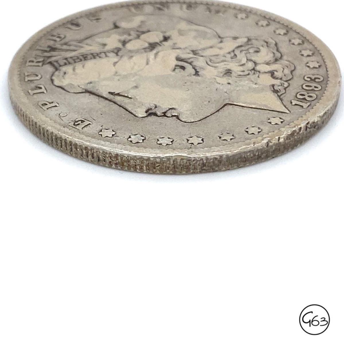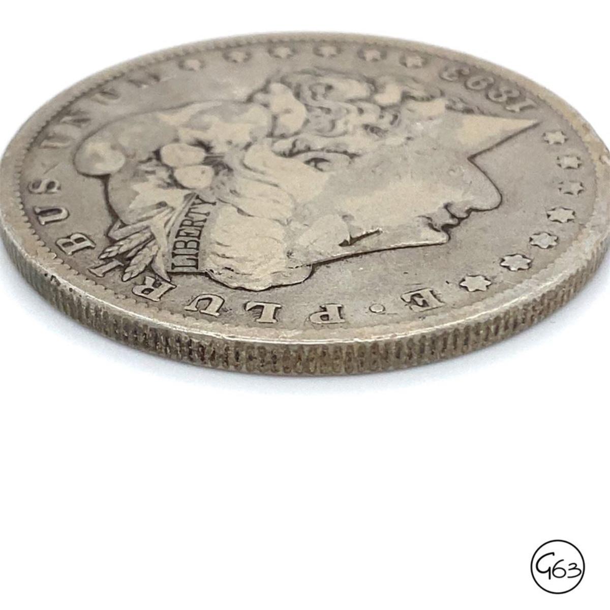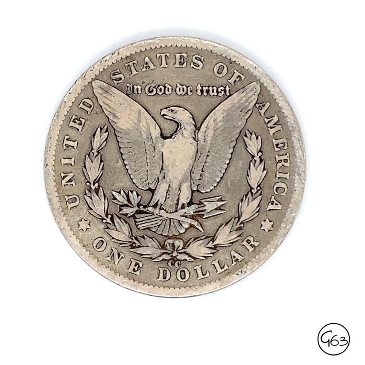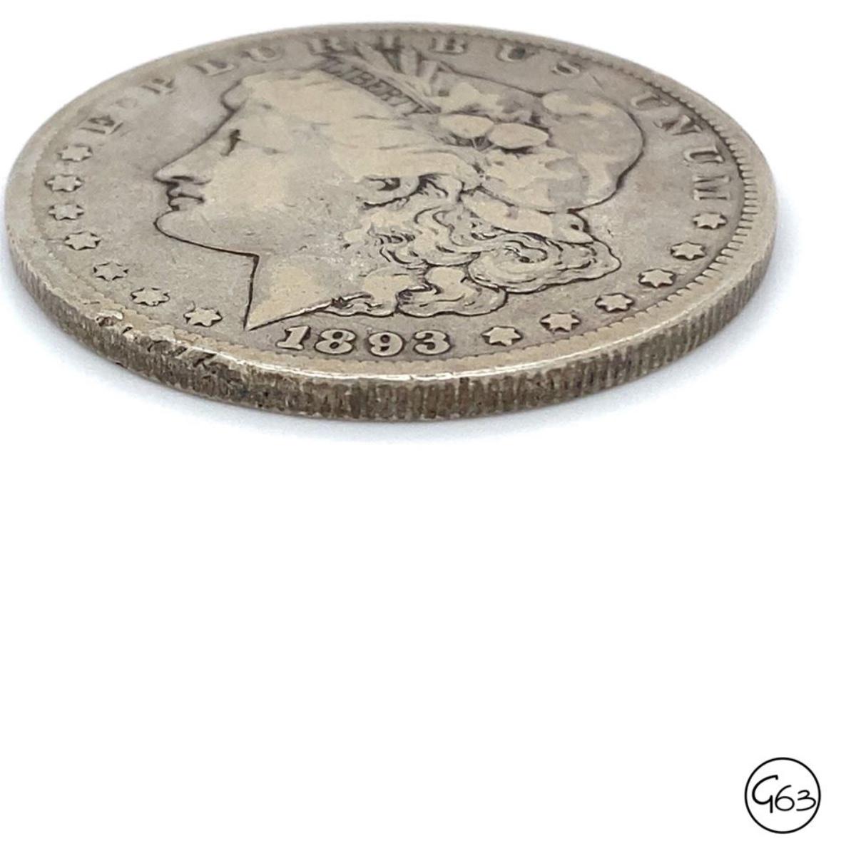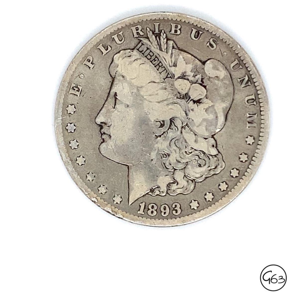 1893 Carson City "CC" Morgan Silver Dollar with "cc" mintmark.