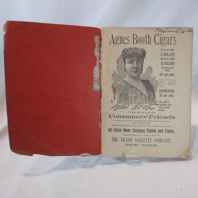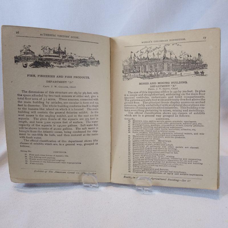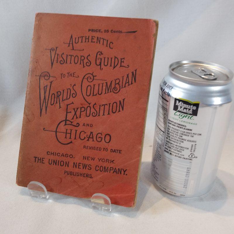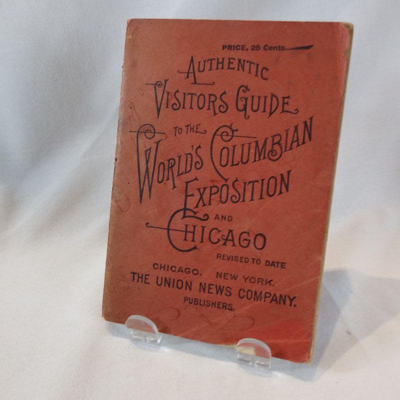 Authentic Visitor's Guide To The World's Columbian Exposition and Chicago by Richard J. Murphy. 1893, published by Union News Co. 67 pages, indexed, pocket-sized Softback guide. 1/2-inch piece missing on the front bottom edge. Light corner wear, else Very Good, for a 126 year old softback, meant to be carried. Prior owner’s name atop the front page ad.