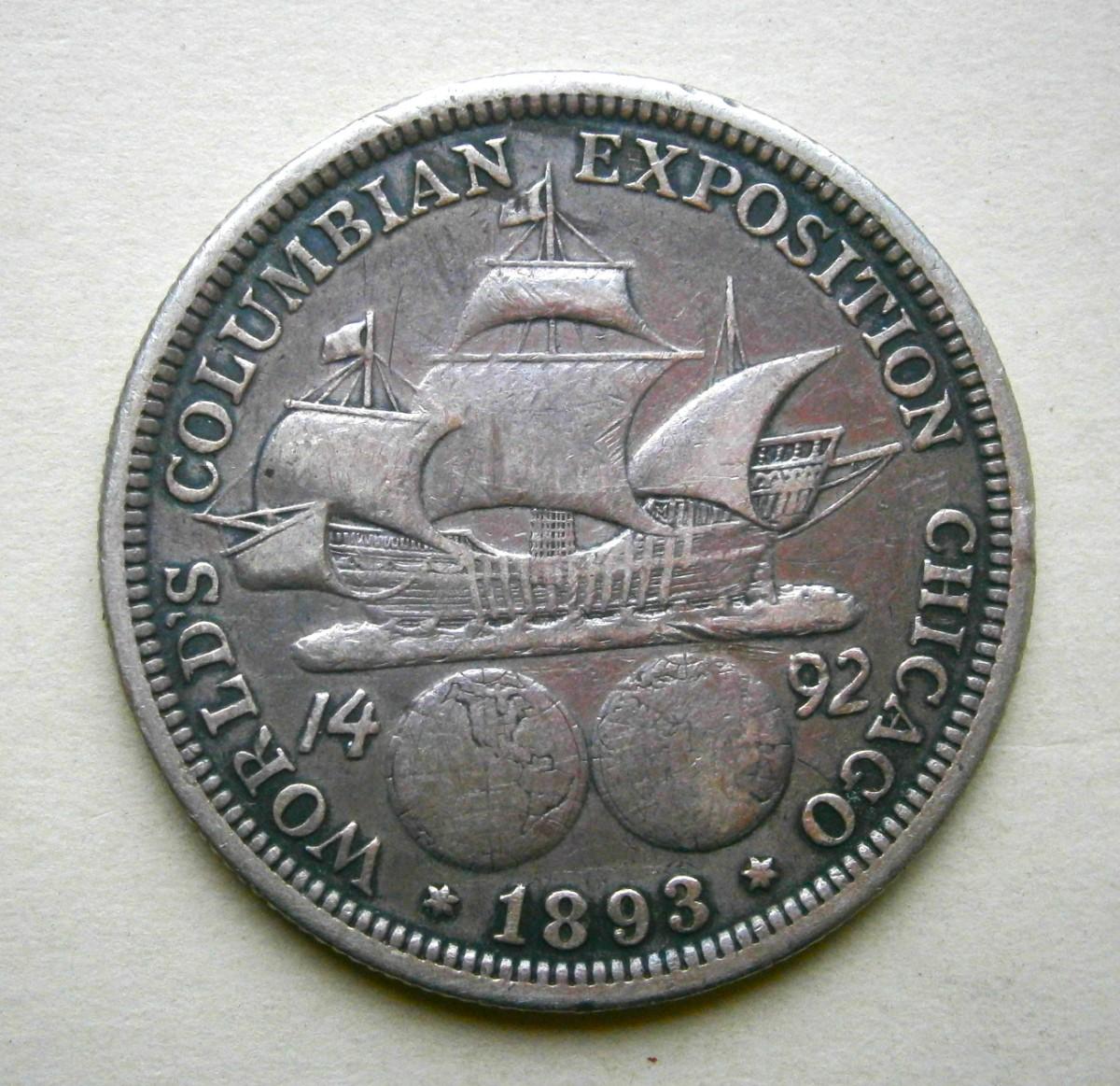1893 Columbian Exposition Half Dollar, 900 silver, circulated.