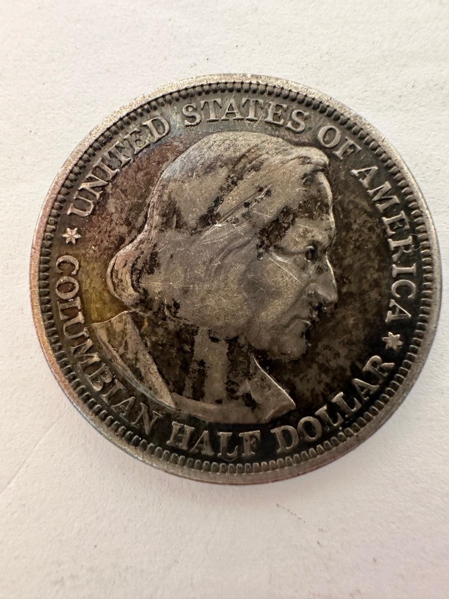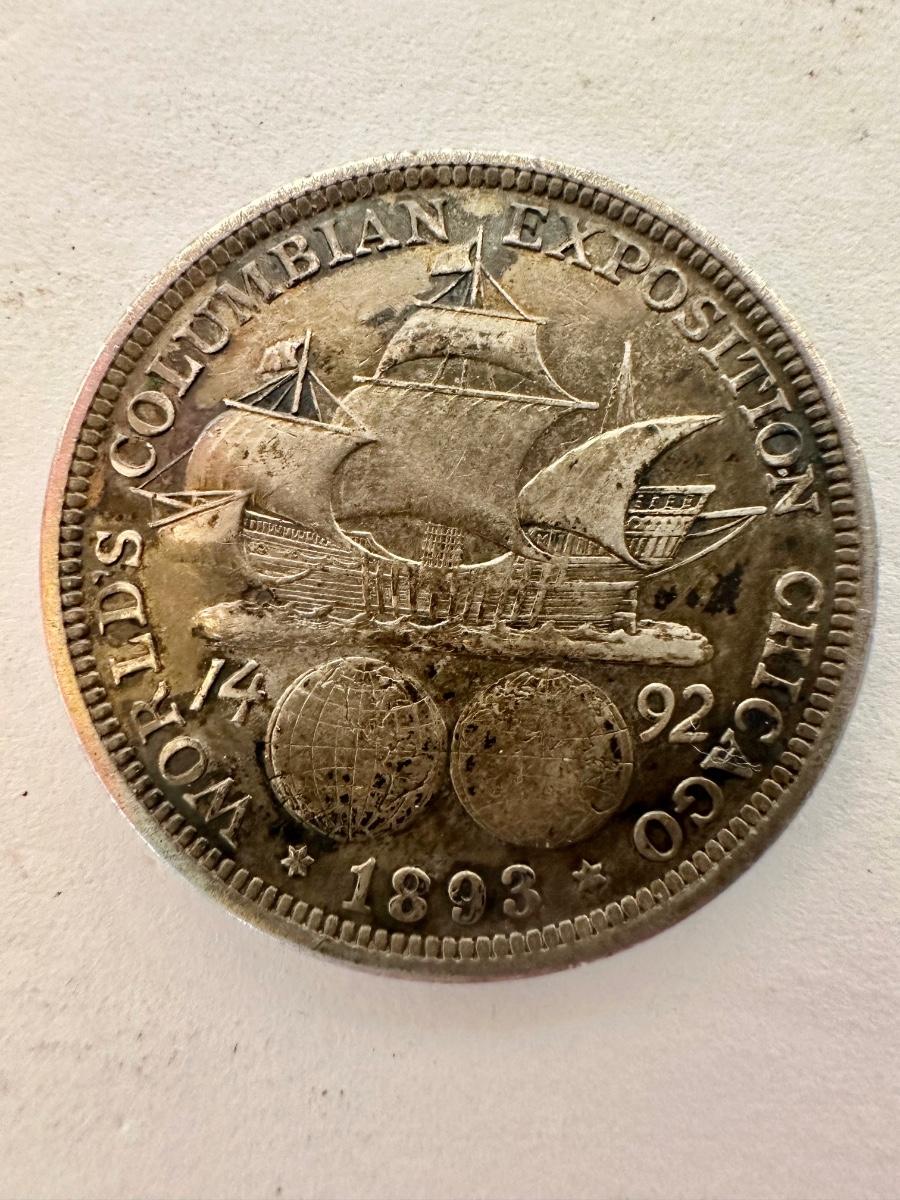 Worlds Columbian Exposition Chicago, 1893 Silver Half Dollar Coin, commemorates Columbus 1492 voyage