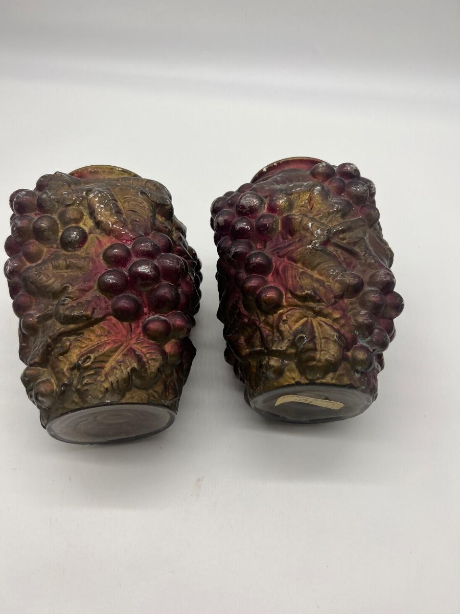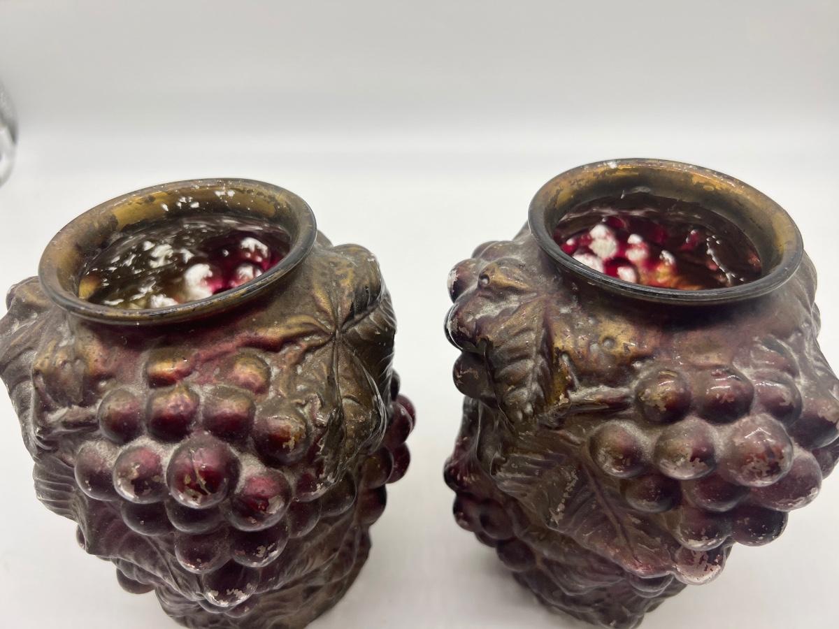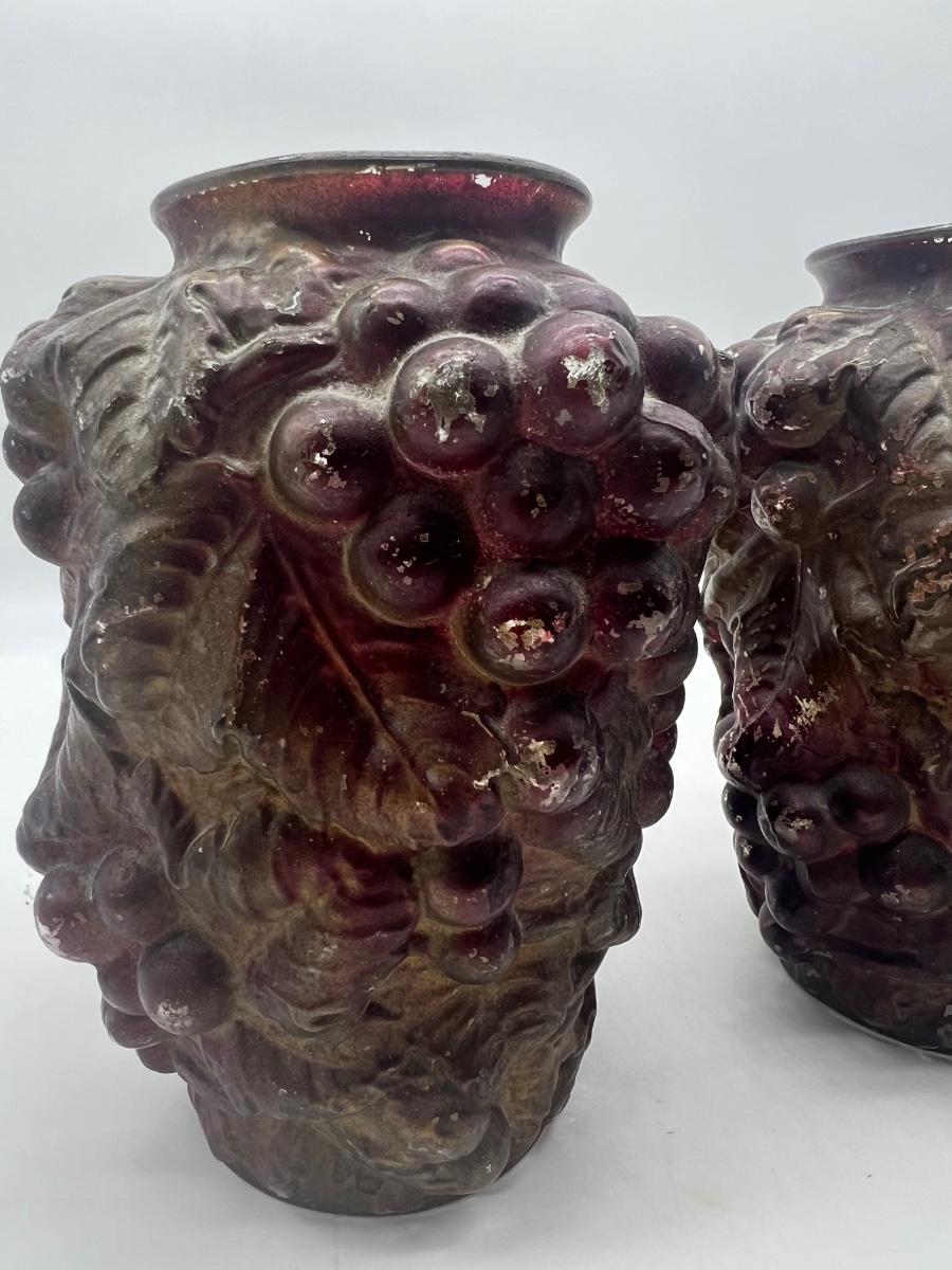 Remember the days when we wrote special stories about pieces? Well, these vases have a hand written note that say wedding vases 1893! Believed to be Goofus Glass. See pictures as some of the color has rubbed off. Vases measure 7 inches tall, approximately 6 inches wide.