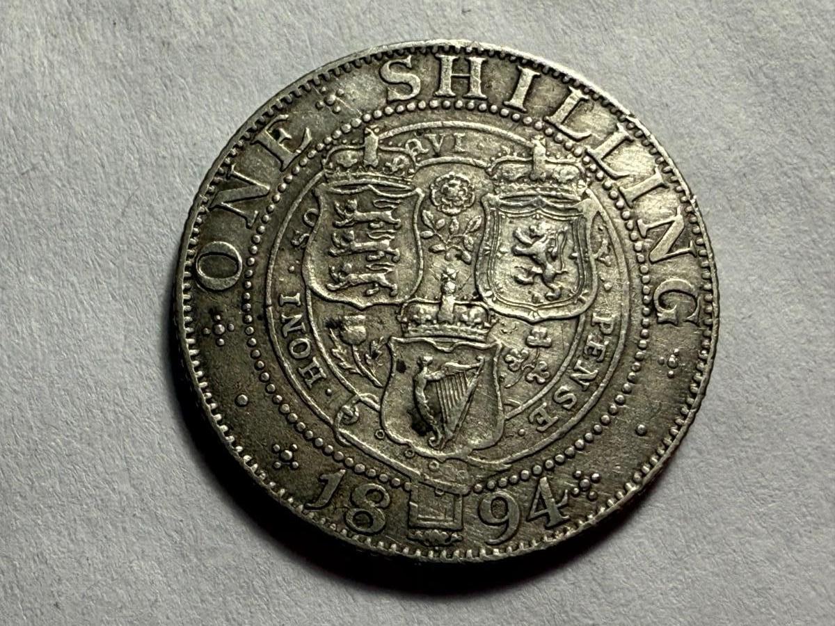 1894 Great Britain United Kingdom QUEEN VICTORIA Shilling Silver Coin VF Condition/Cleaned as Pictured. $5 DOMESTIC SHIPPING.