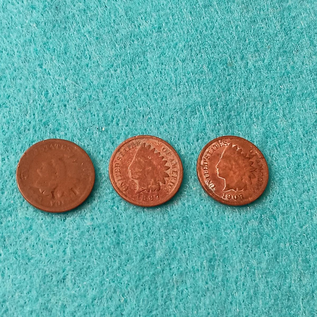 1897, 1908 & ? INDIAN HEAD PENNIES