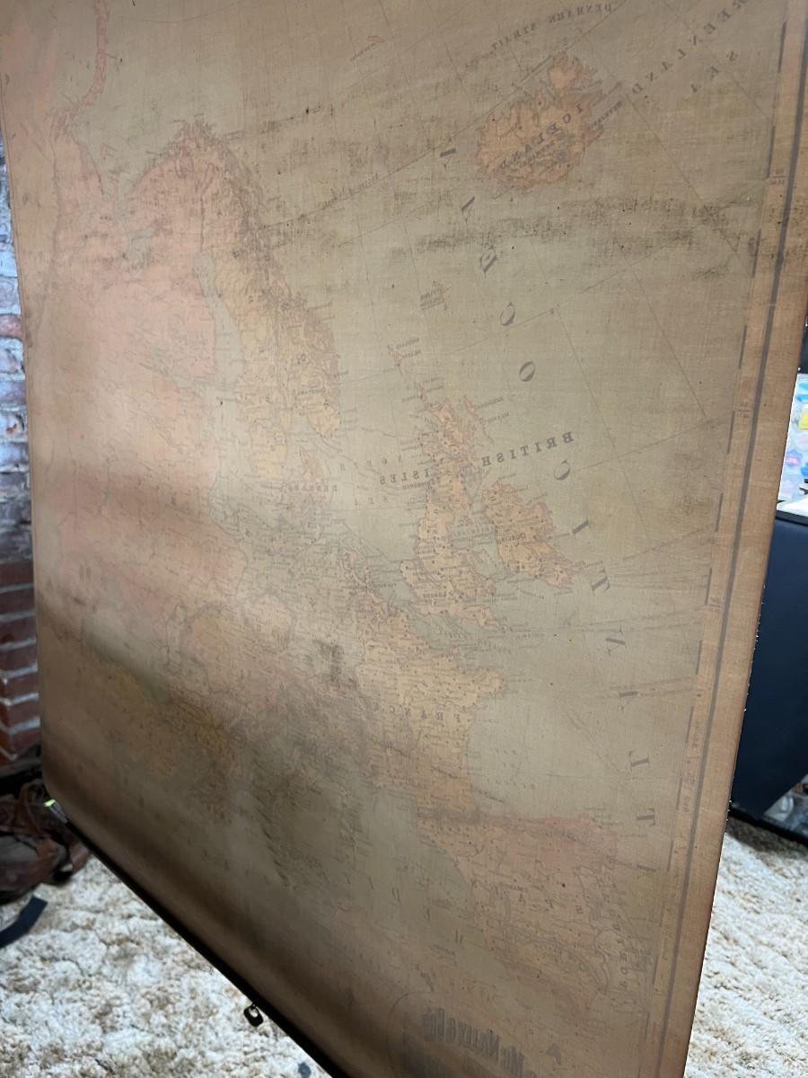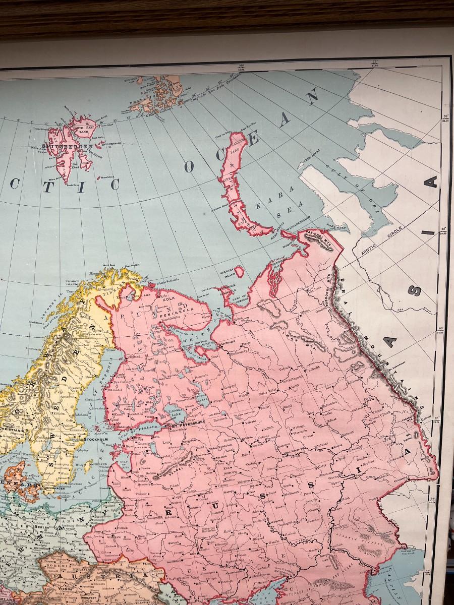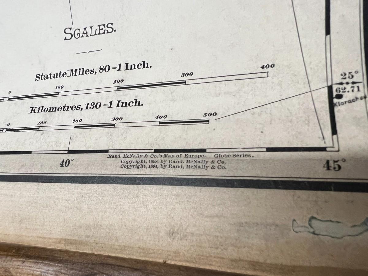 1898 Antique Rand McNally & Co Map of Europe in Original Wood Pull-Down Case