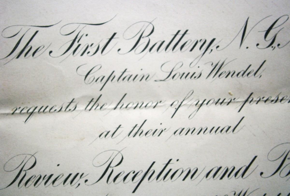 1899 1st Battery, NJ NY Invitation to Ball by Capt. Lewis Wendel