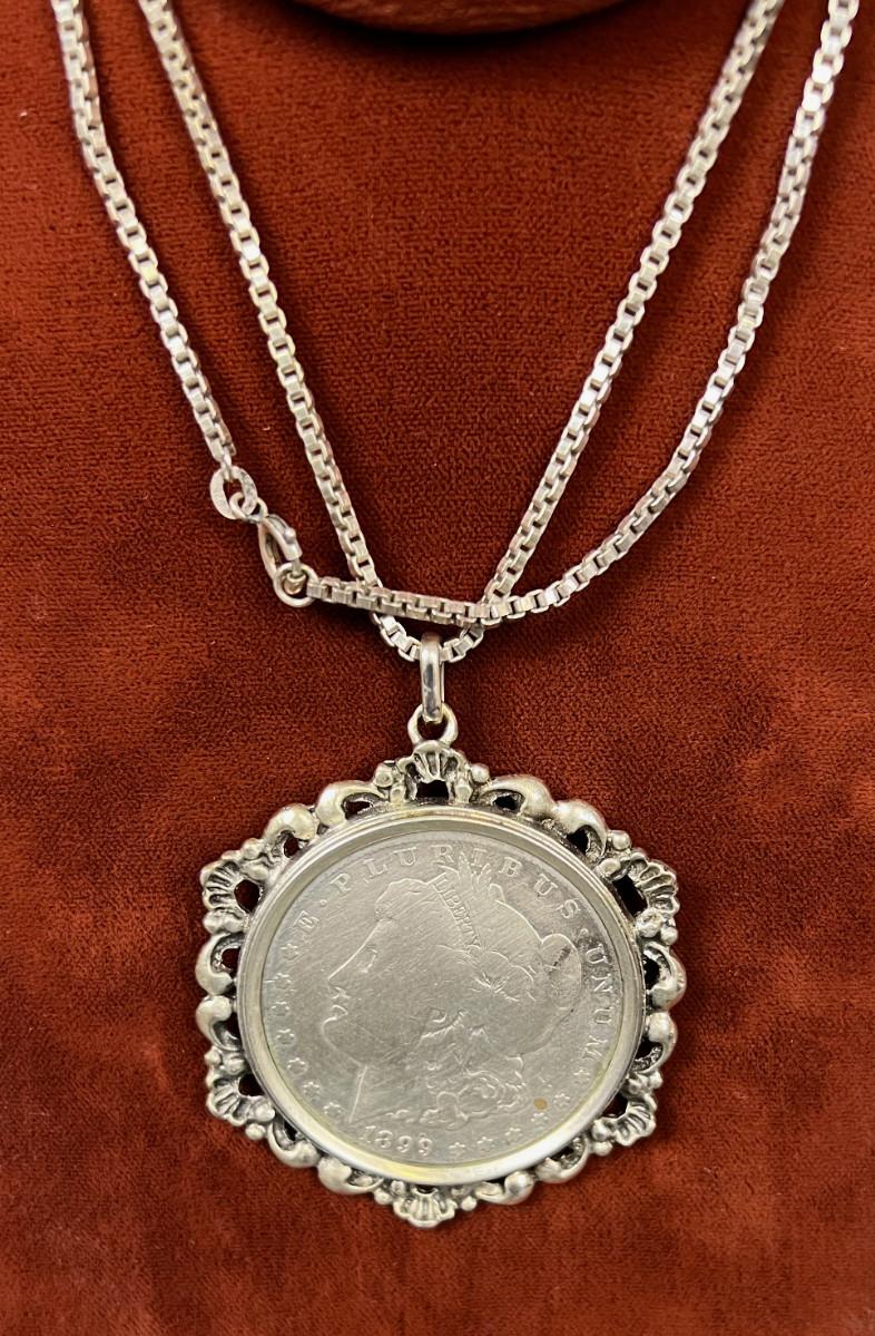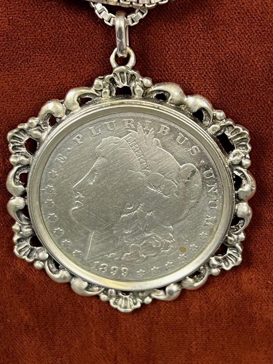 1899 S Morgan Silver Dollar in Sterling Silver Necklace Setting