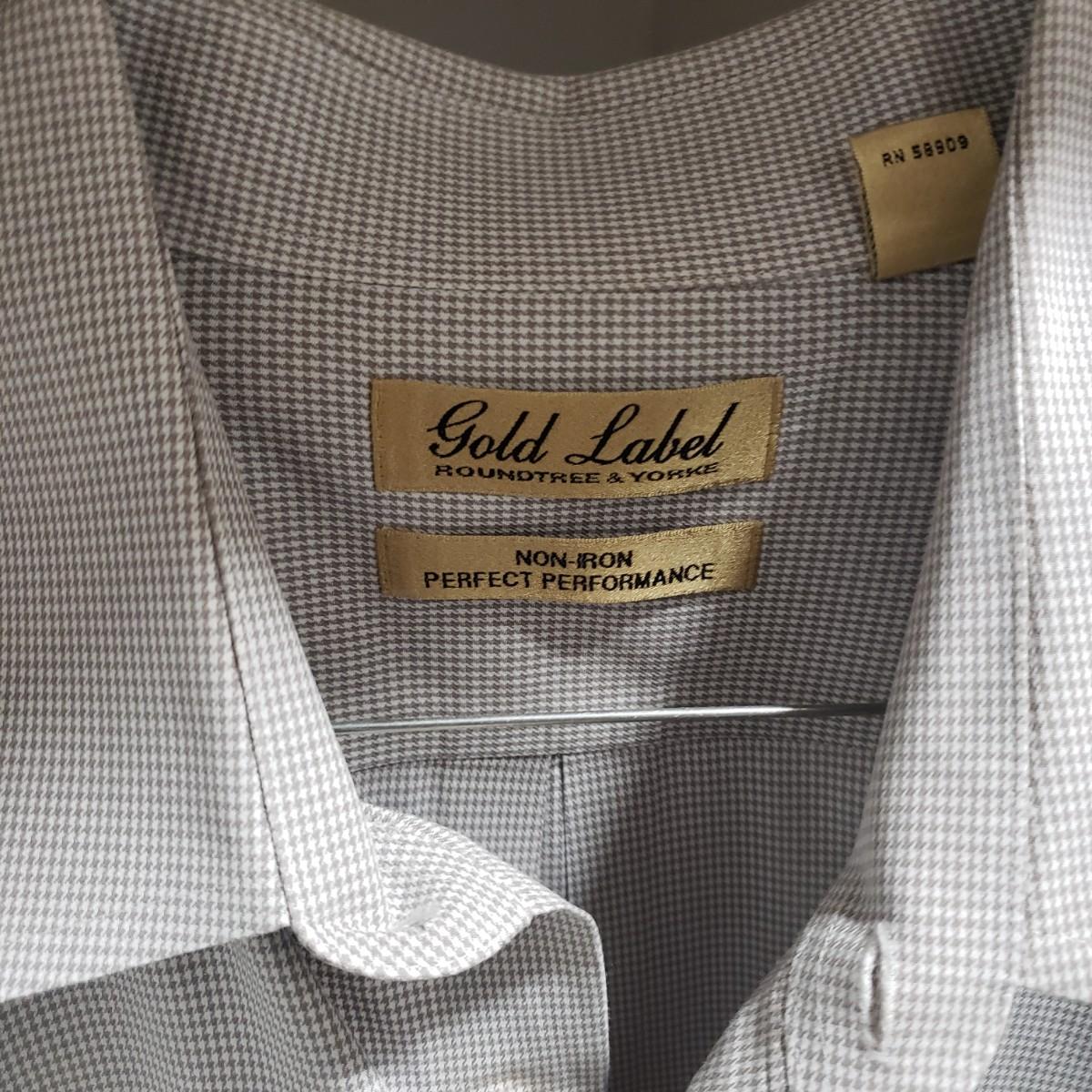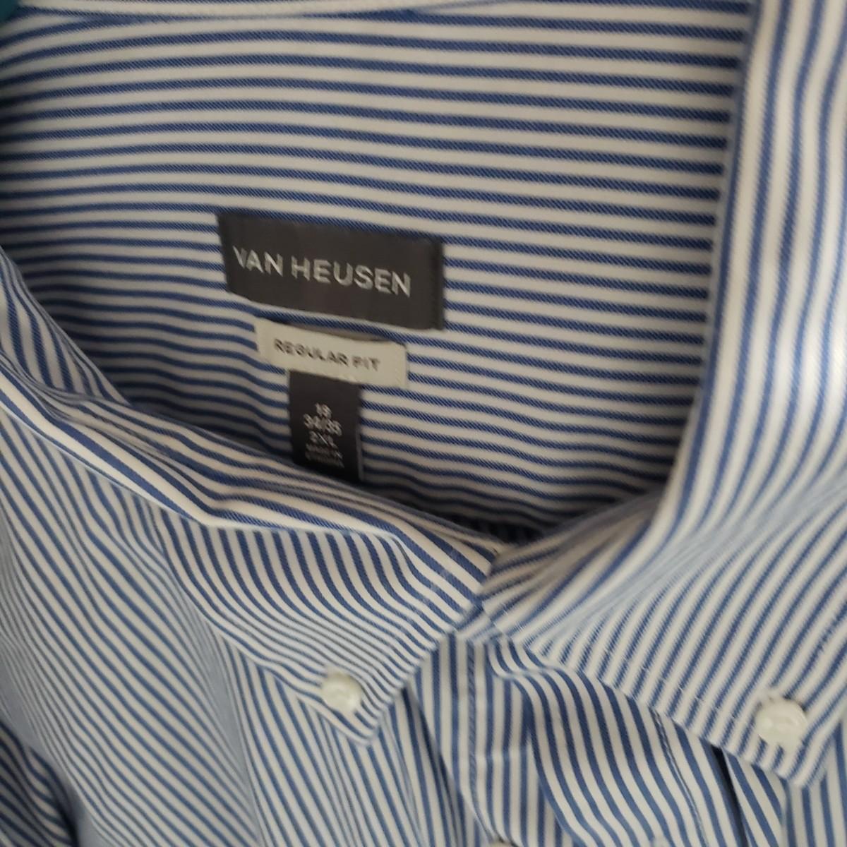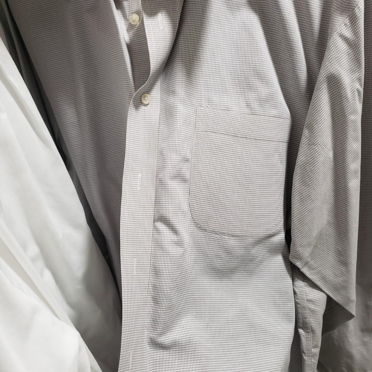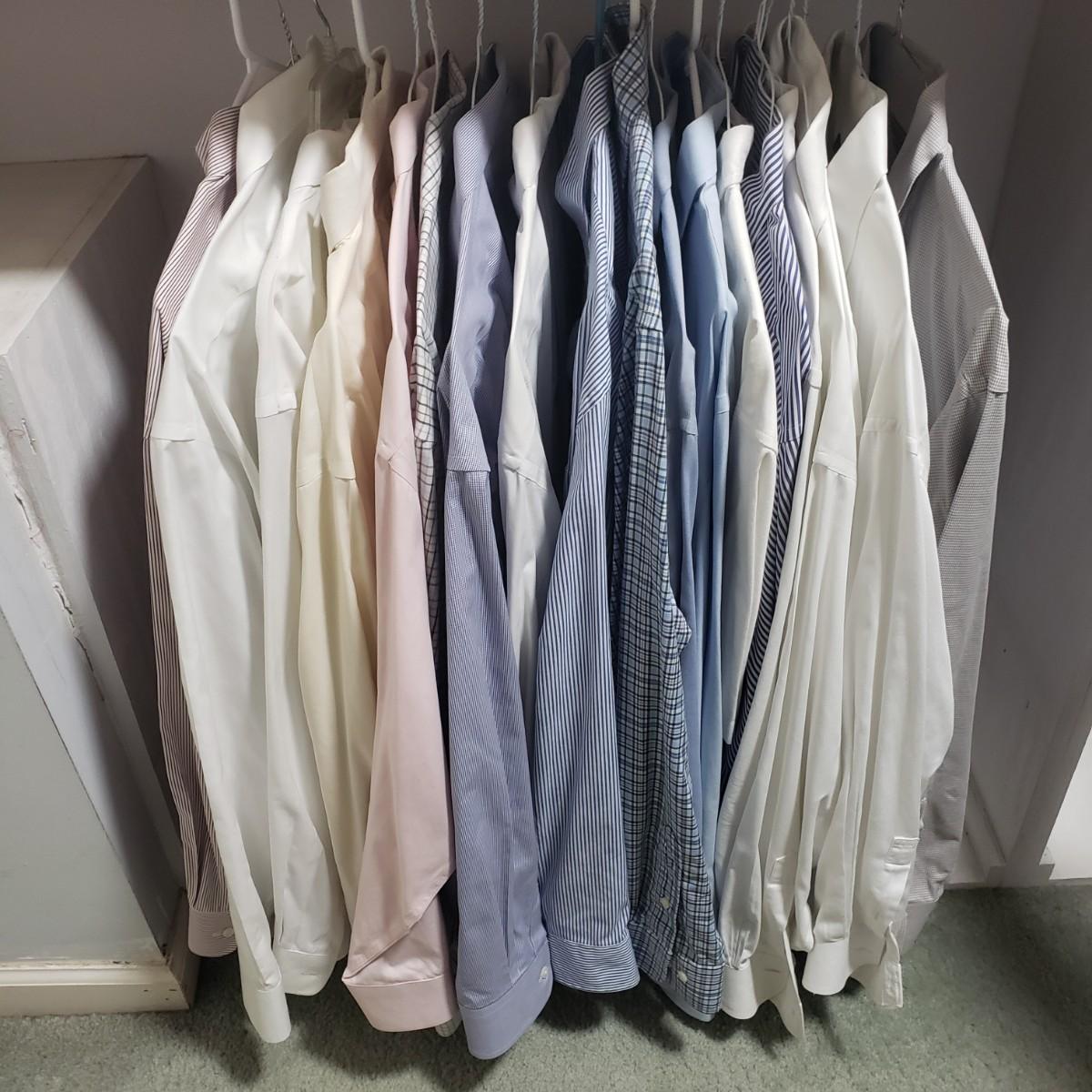 This lot has 18 men's button down dress shirts. Labels include Gold Label Roundtree & Yorke, Polo, Brooks Brothers and Van Hessen. See pictures for sizes.