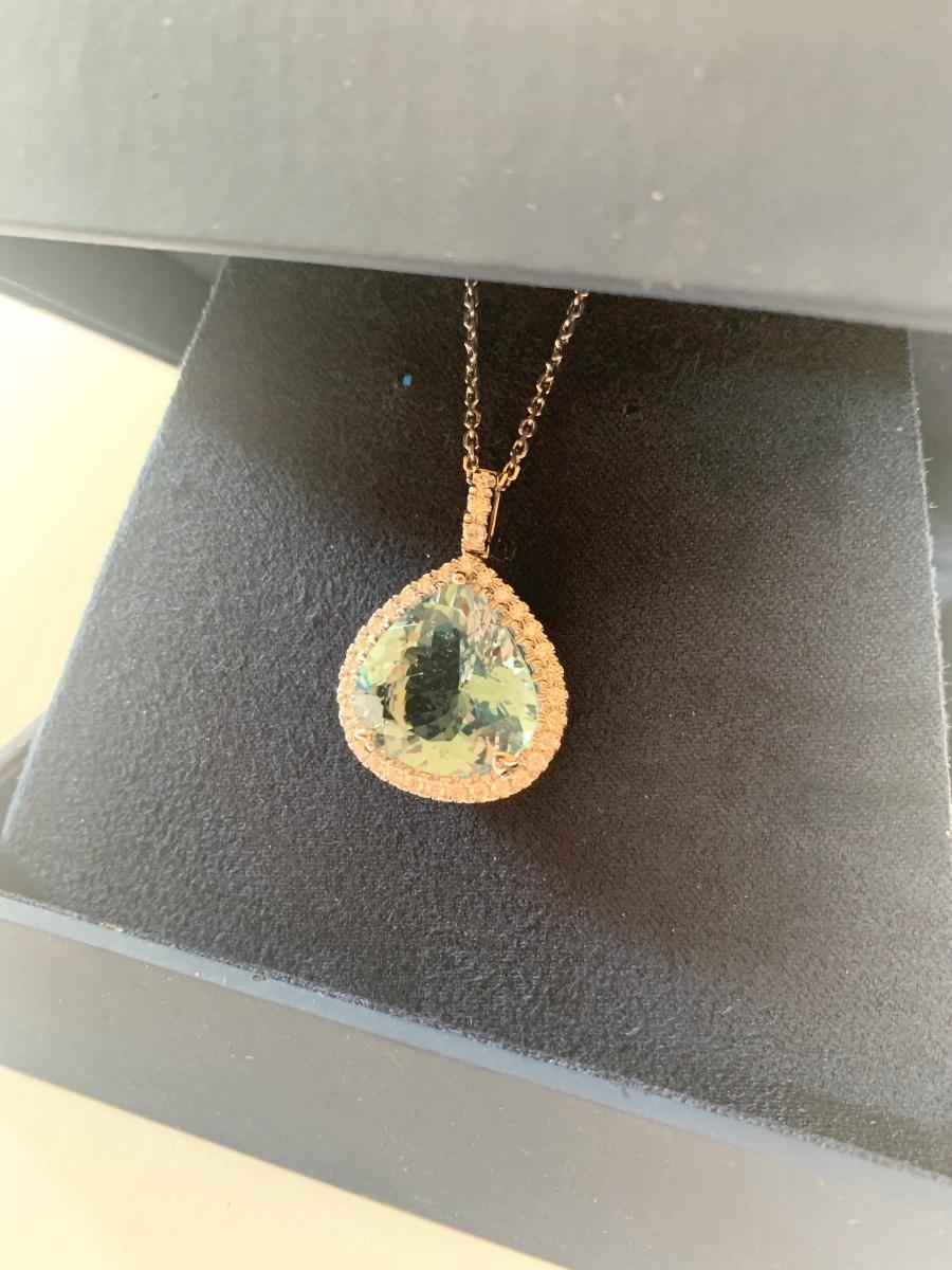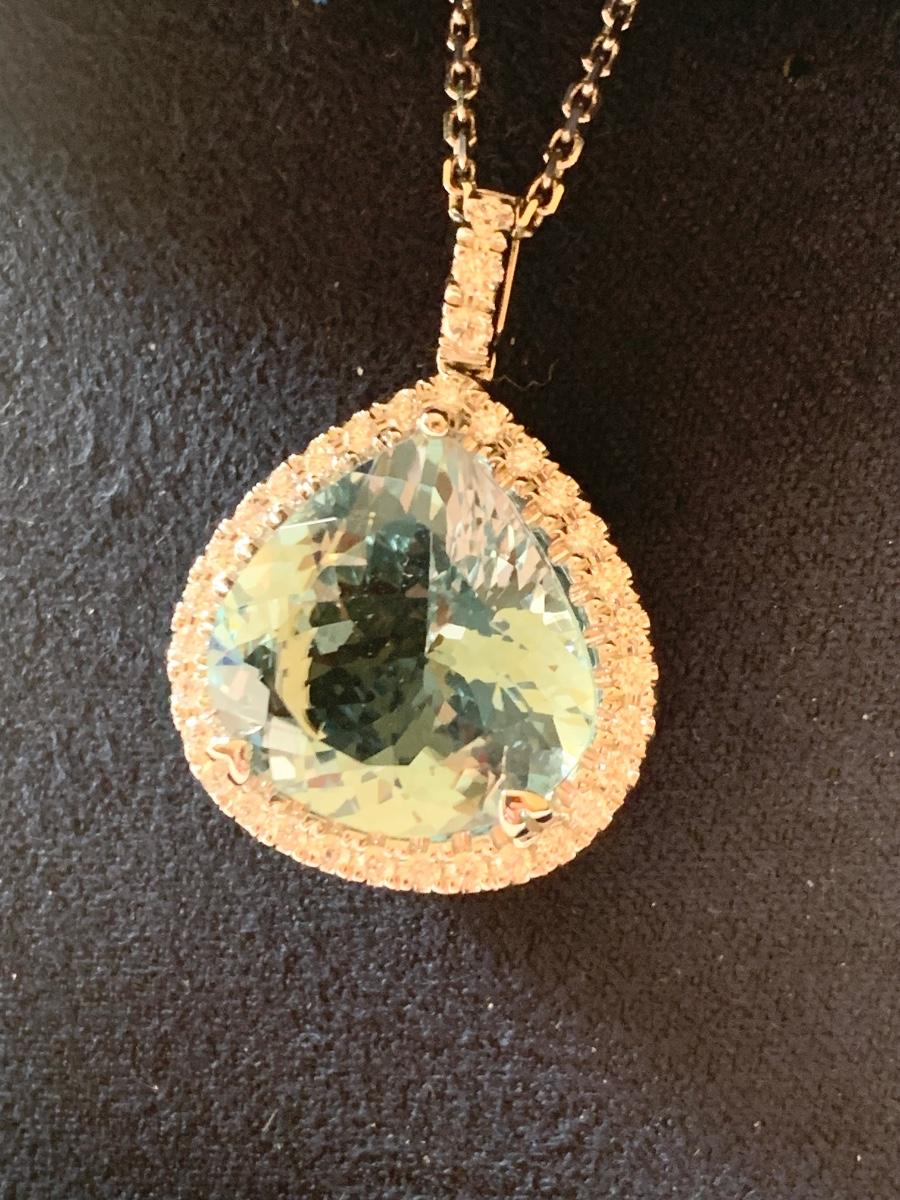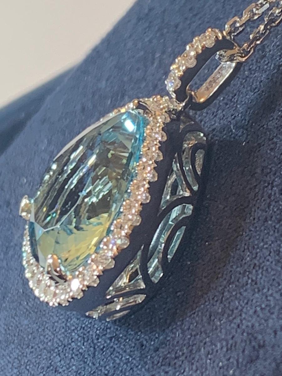 18k Blue Topaz Pendant & Diamonds / Necklace
