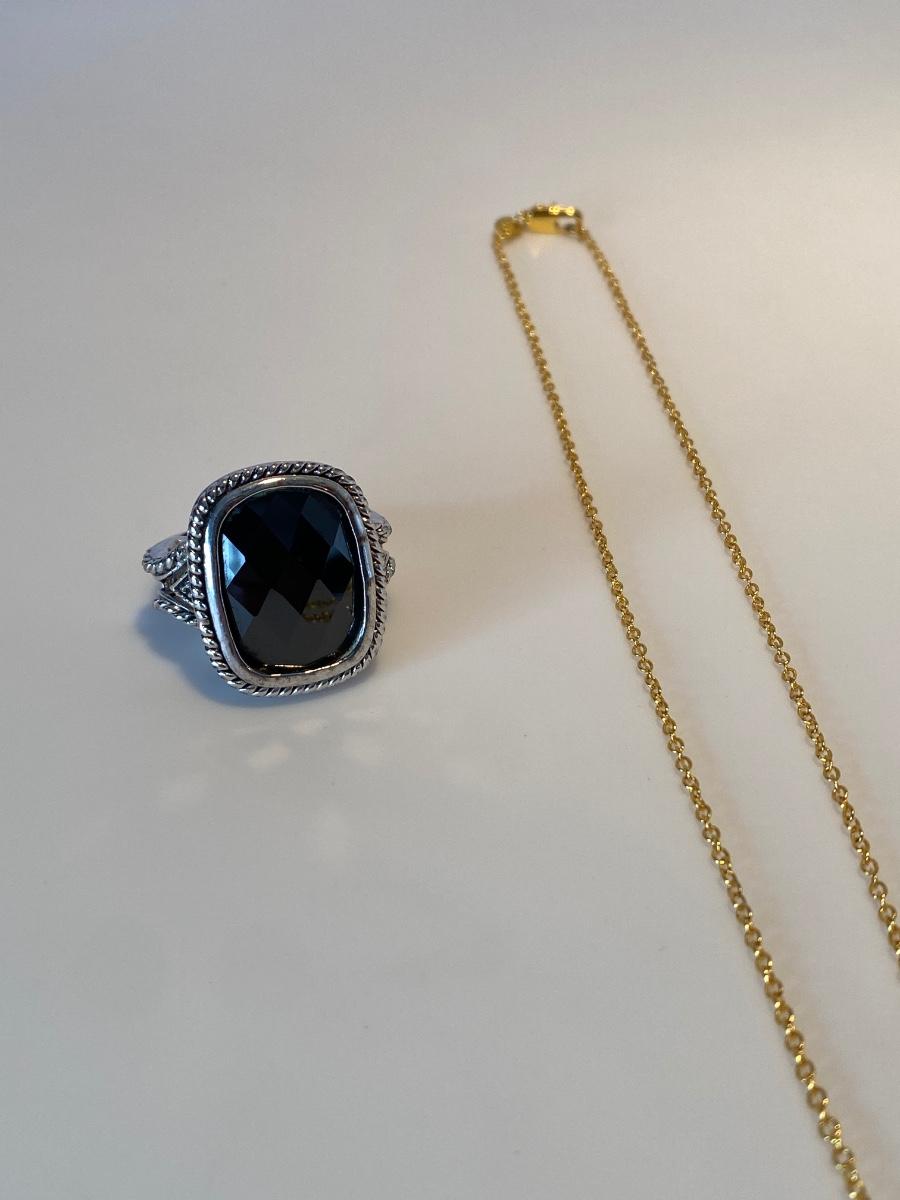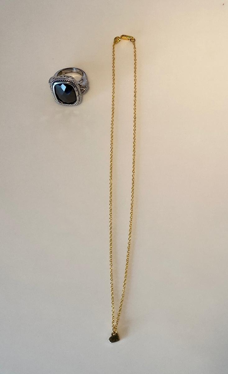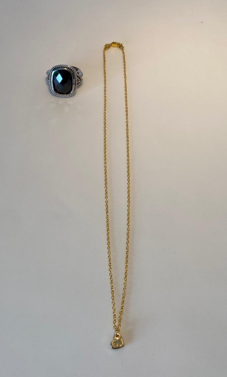 18K gold filled ring and necklace. Marked. Preowned and sold as is