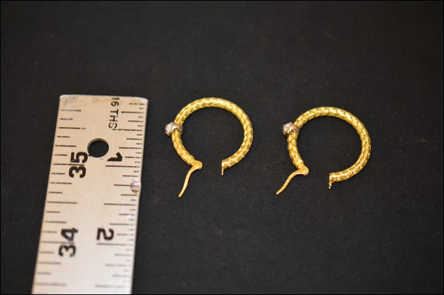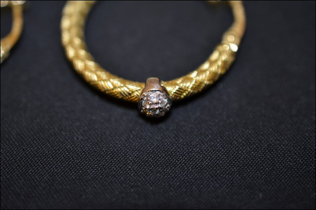 18K gold hoop earrings with diamonds, marked Ital, 5.5 grams, 20 diamonds total