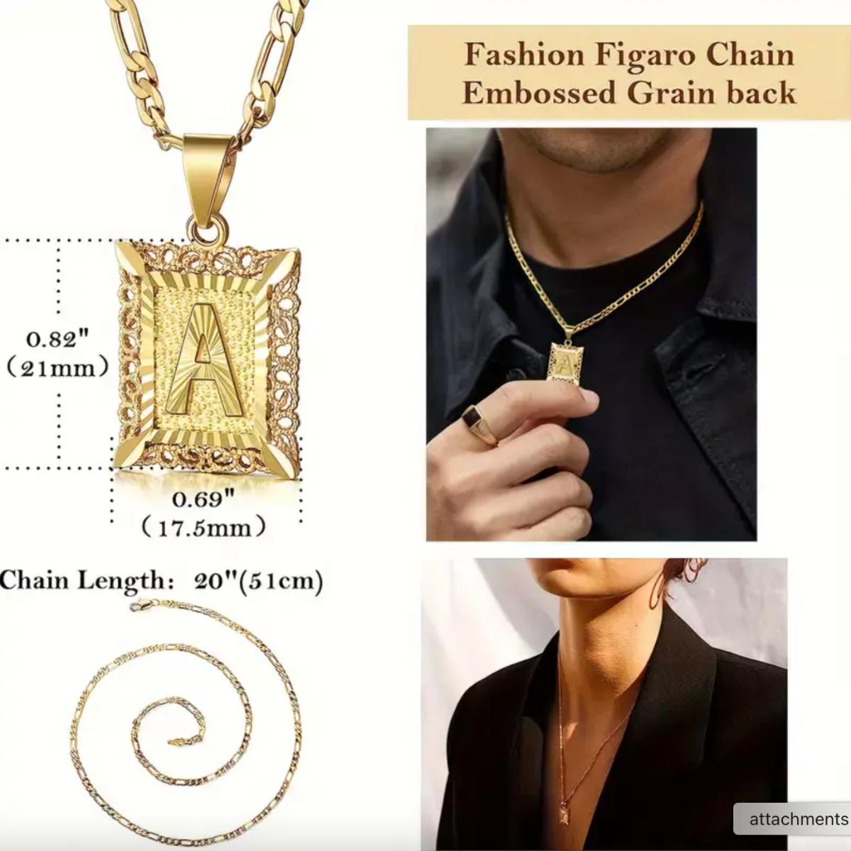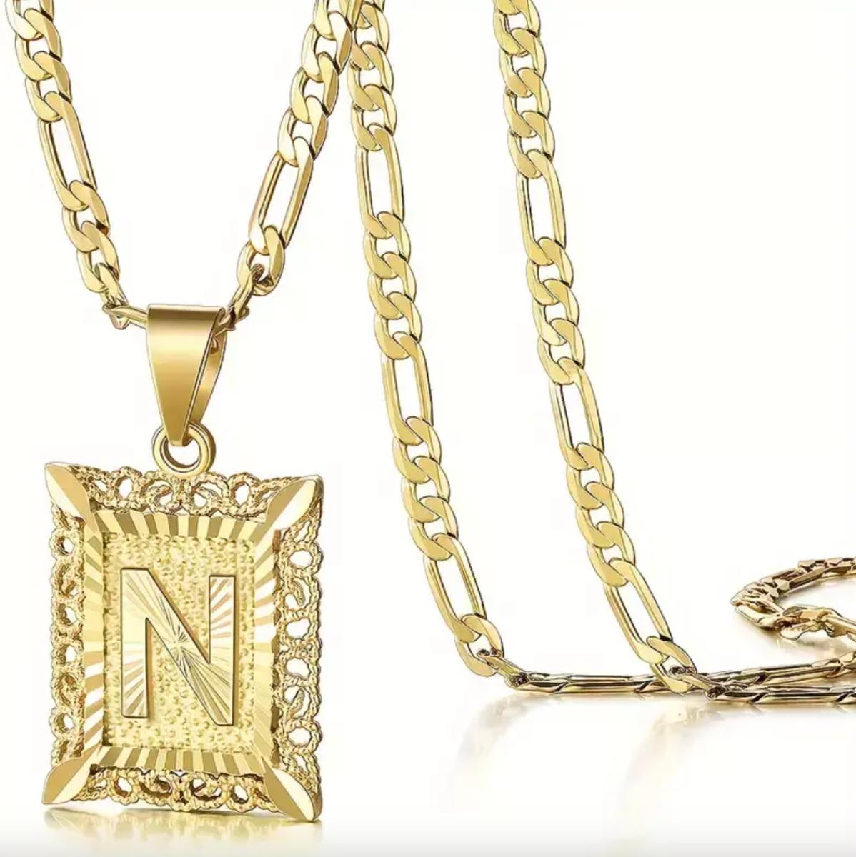 18K Gold Plated Letter "N" Square Pendant Necklace Initial Chain Men Women Gift