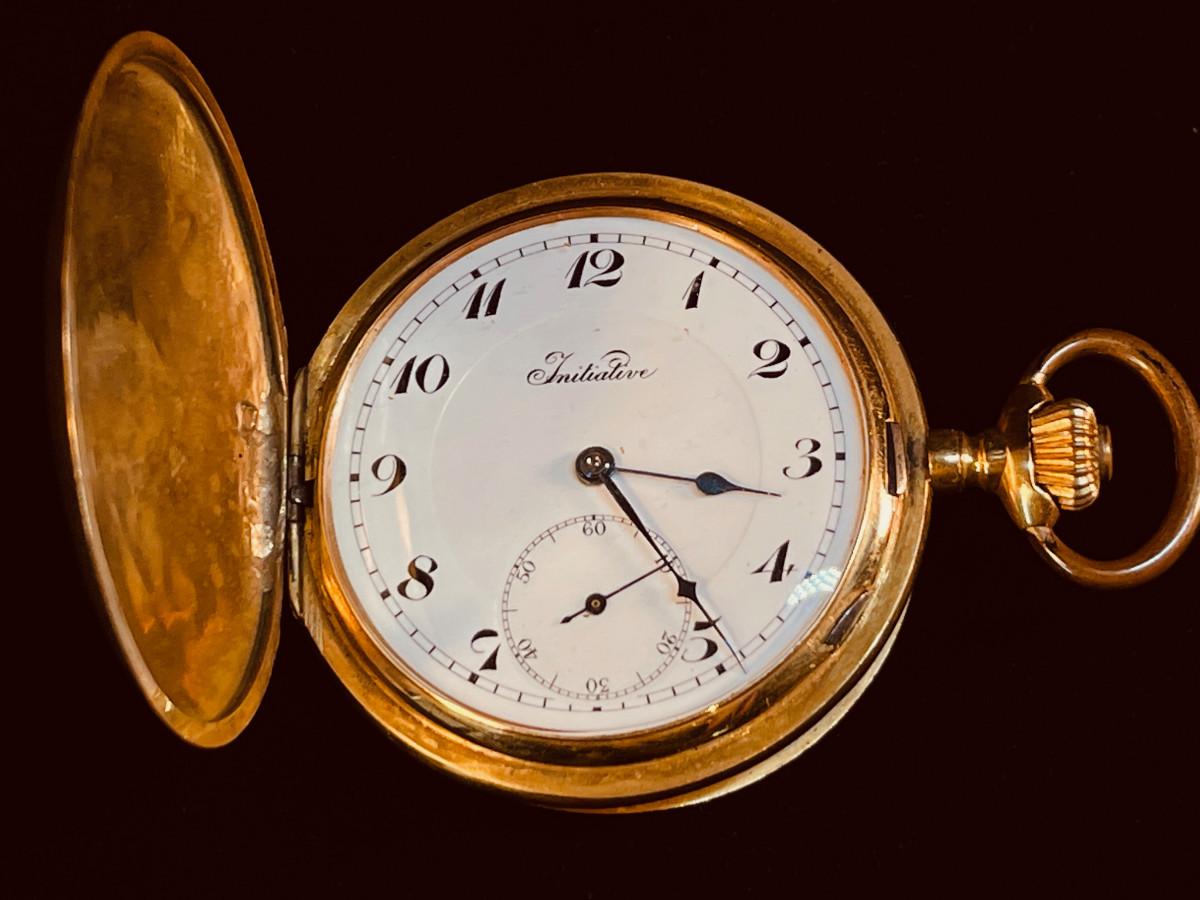Antique 18K Gold Case INITIATIVE Chronometer Men's Pocket Watch