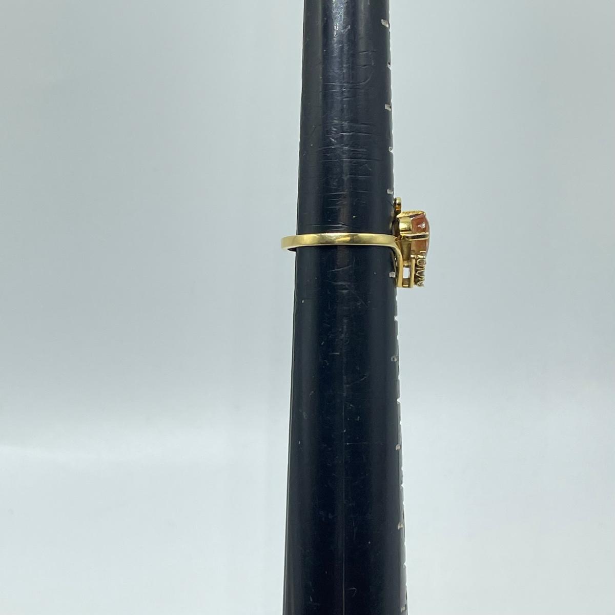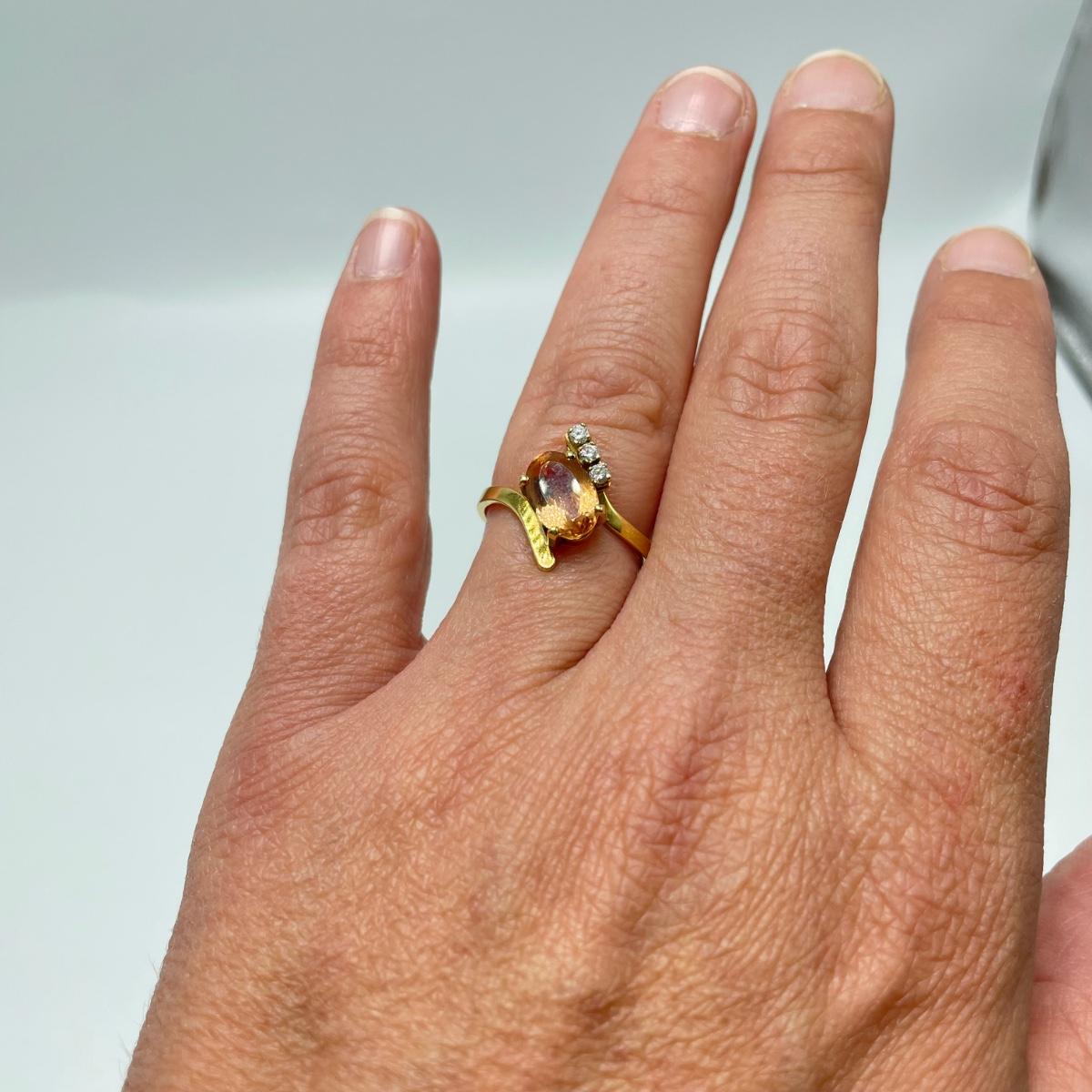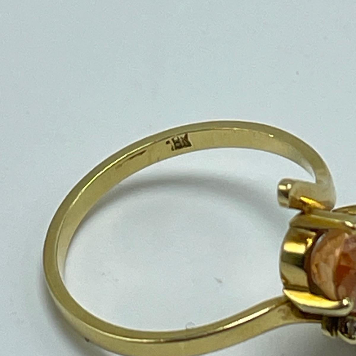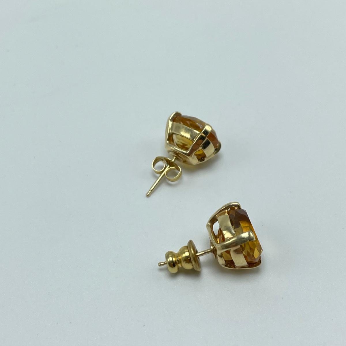 Lot includes a gold ring marked 18k with a citrine-colored stone and three small moissanite stone. Also includes a pair of gold-colored earrings with citrine-colored stones. No known markings on the earrings. All sales are final. No returns or refunds. Please bid accordingly.