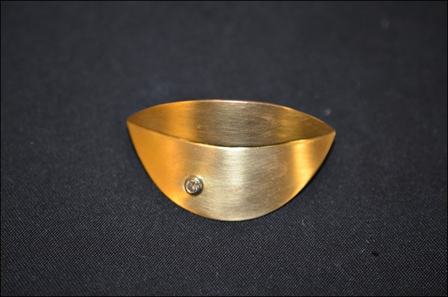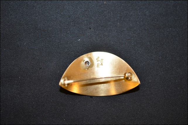 18K studio art leaf pin brooch, 2mm diamond accent, 4.2 gram weight, stamped, 1.