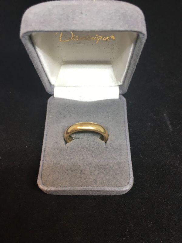 This wedding band is made out of 18K gold. Its in excellent condition.