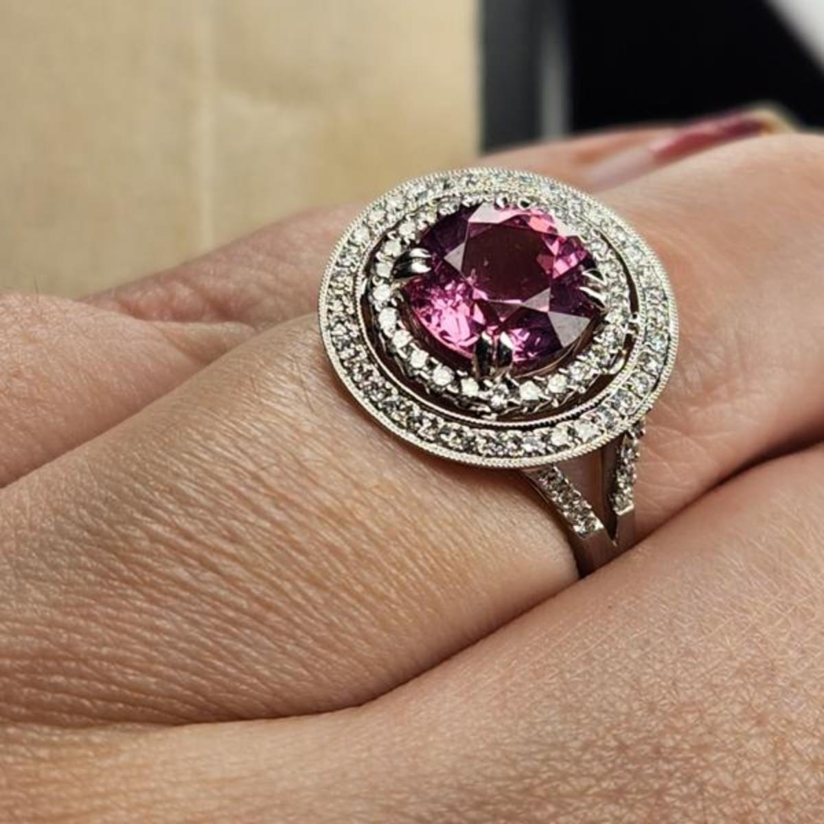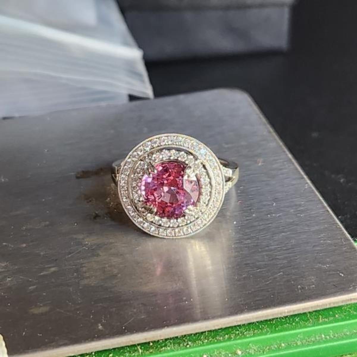 18k white gold 3.5 carat mahenge hot pink spinel ring , the huge round natural pink spinel 2.9 carats and natural!! Size 8.25