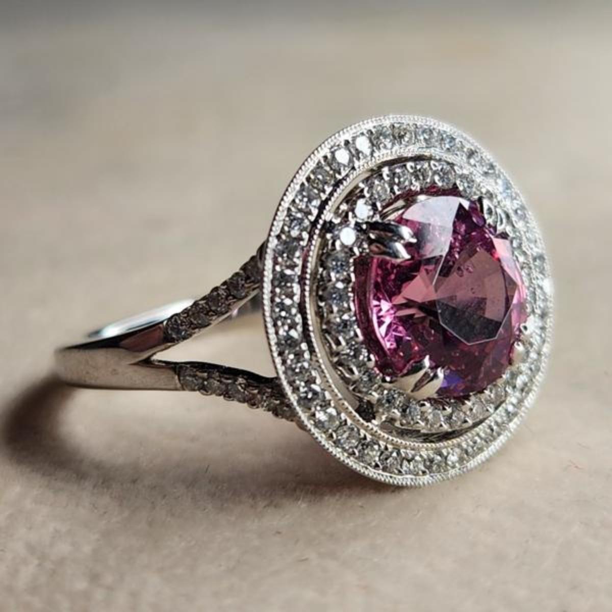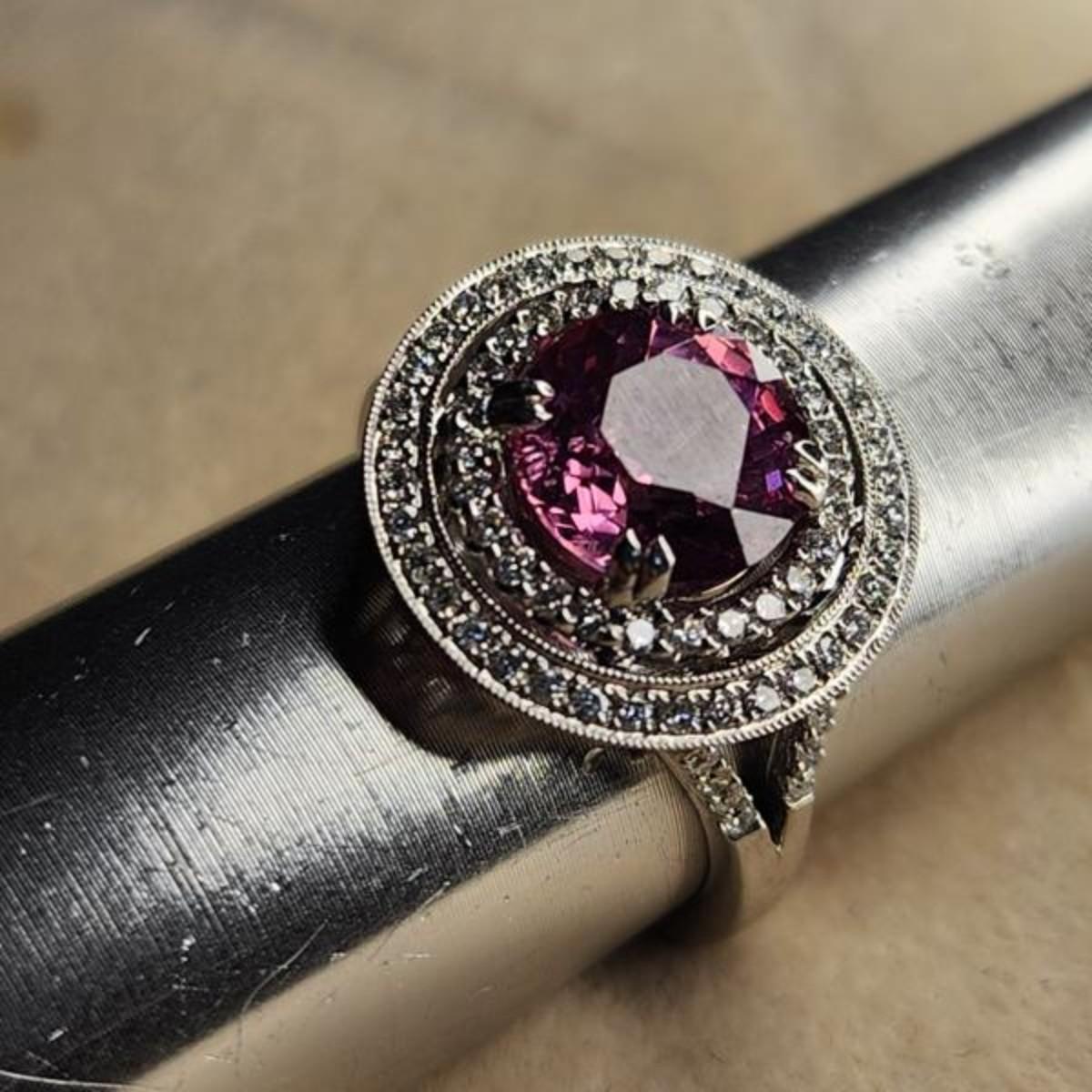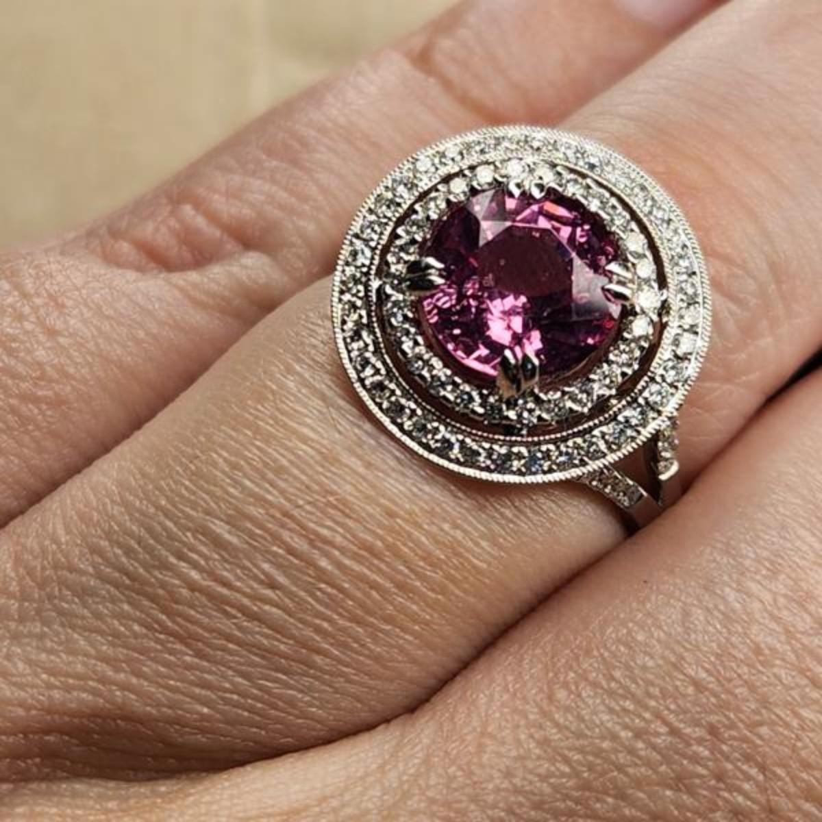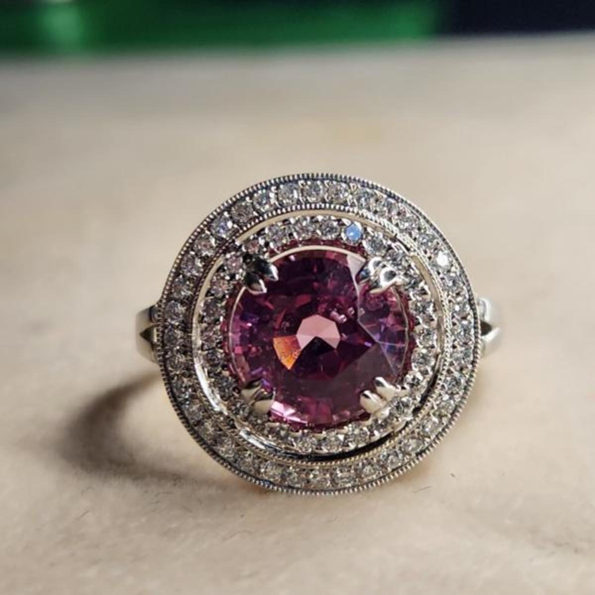 18k white gold 3.5 carat mahenge hot pink spinel ring , the huge round natural pink spinel 2.9 carats and natural!! Size 8.25