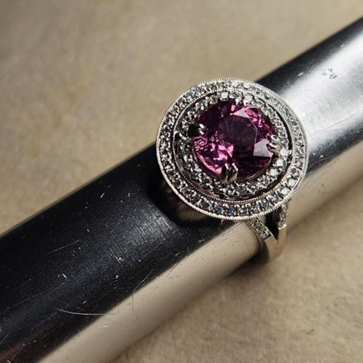 18k white gold 3.5 carat mahenge hot pink spinel ring , the huge round natural pink spinel 2.9 carats and natural!! Size 8.25