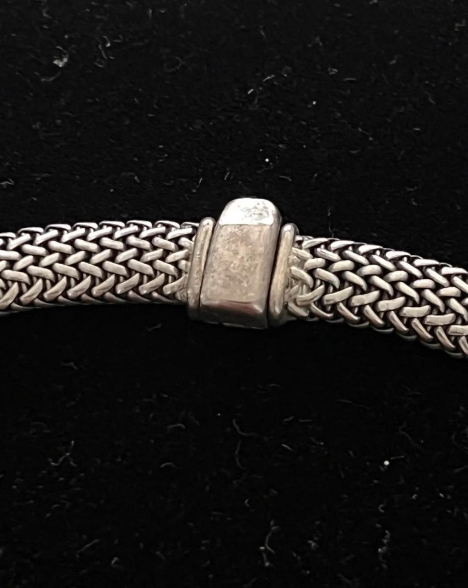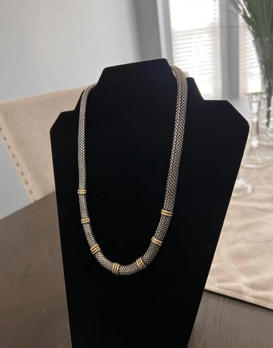 18k Yellow Gold & Sterling Silver Oxidized Woven Chain Bali Style Necklace