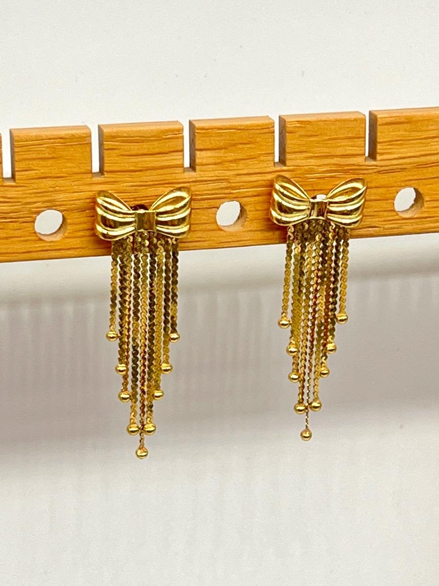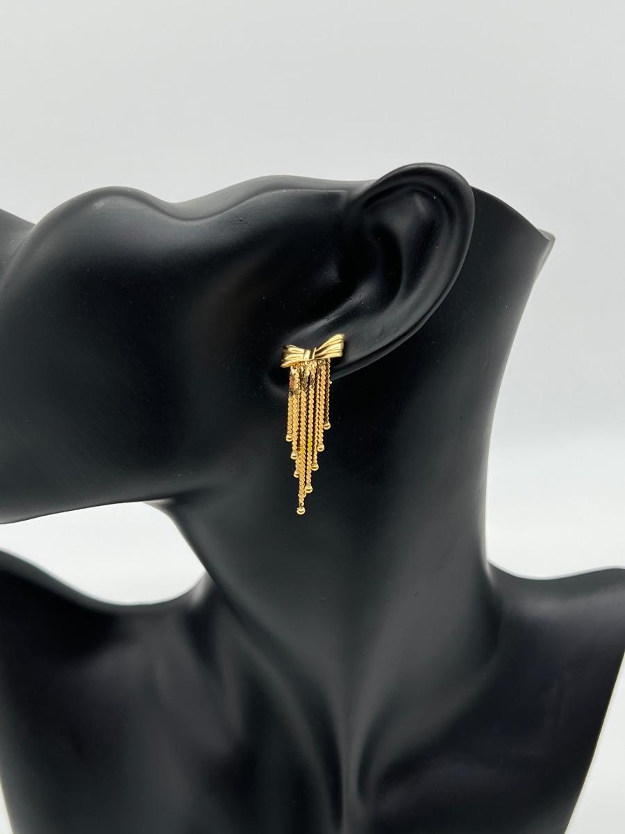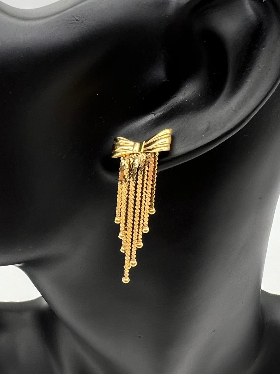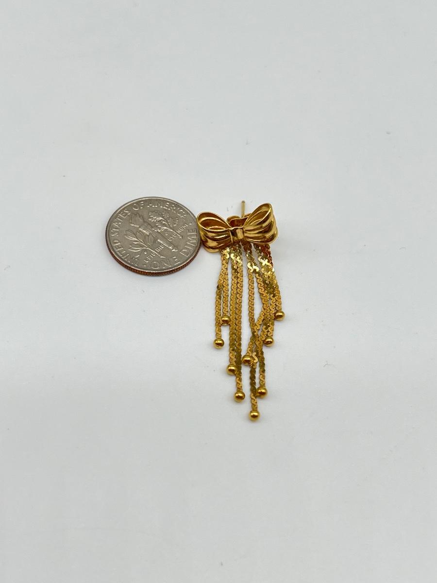 18K YG ~ Bow dangle post earrings ~ 4 grams total ~ 1.75” Dangle