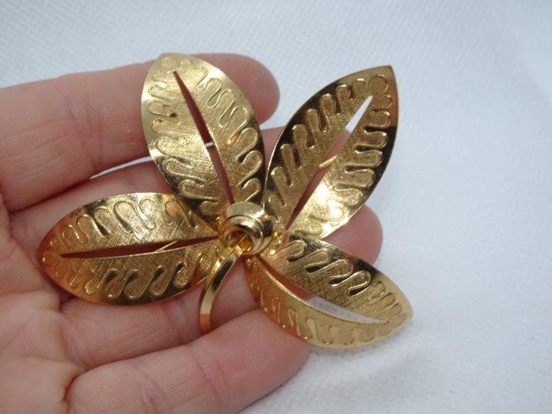 18KGP Germany Gold Tone Leaf Flower Brooch