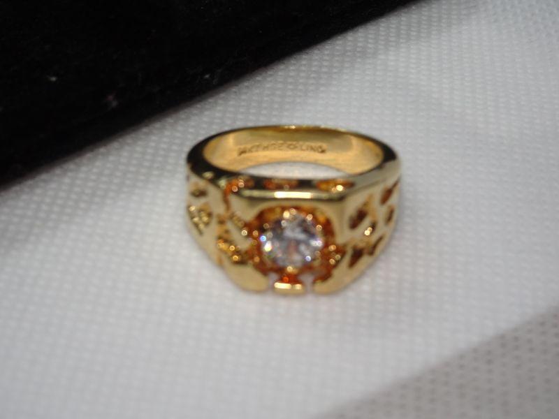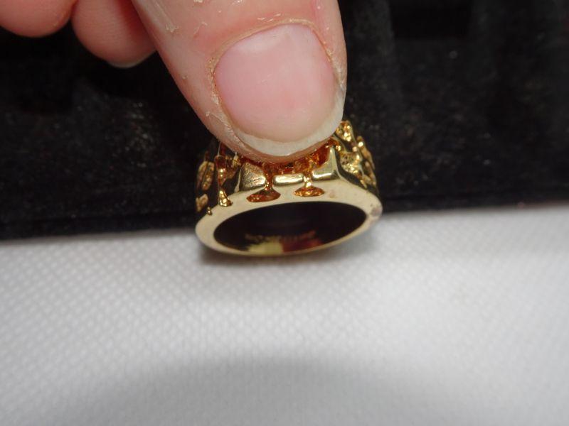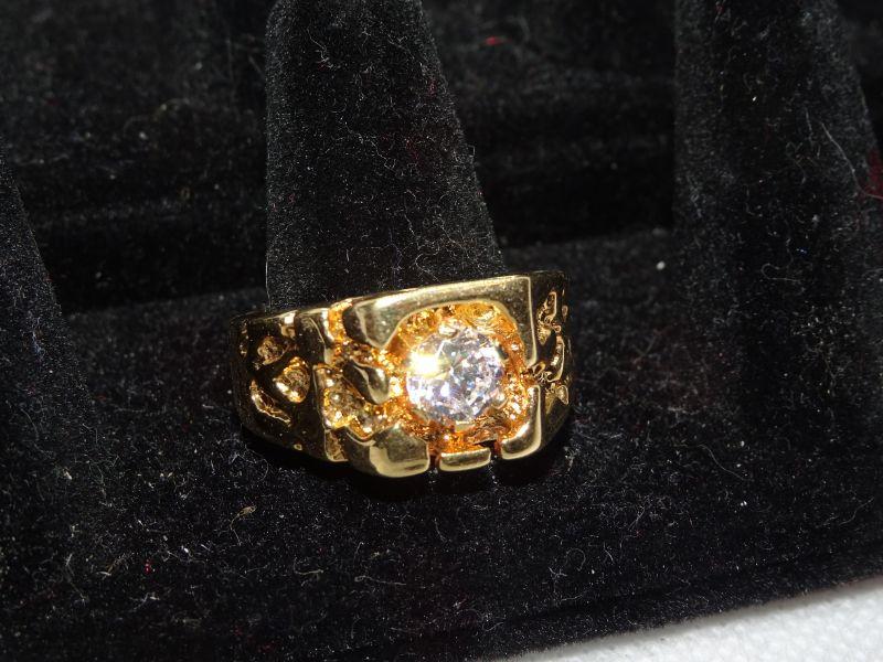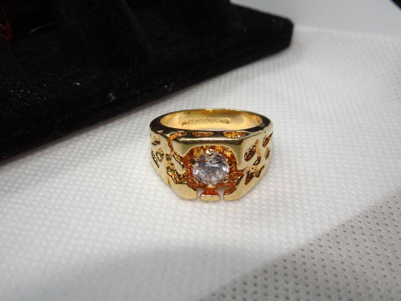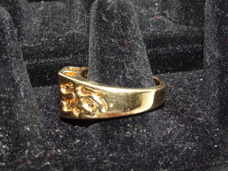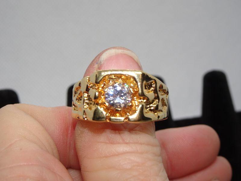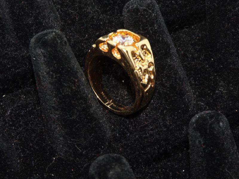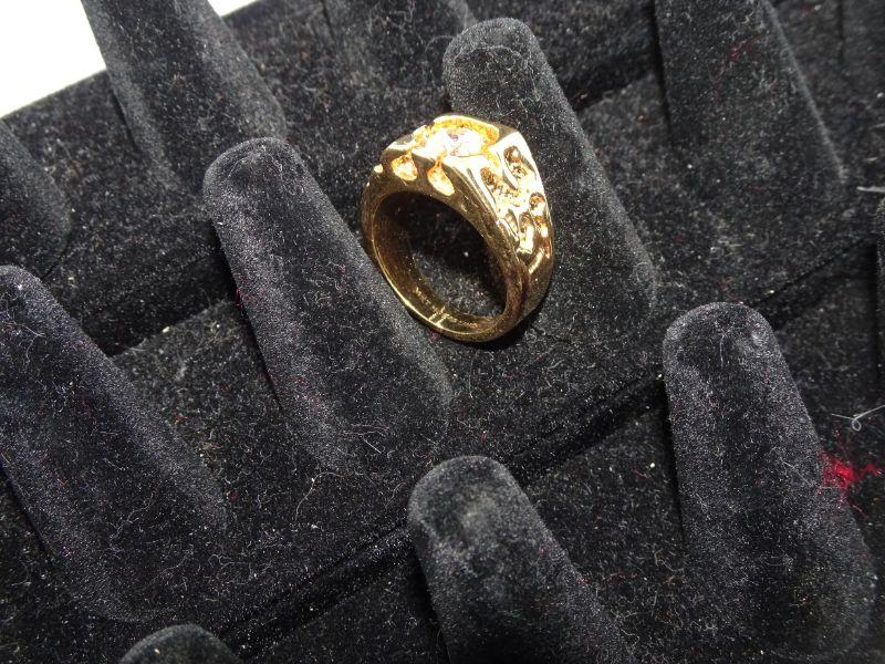 18KGP Gold Nugget Man's Pinkie Ring, CZ Scarface Ring - Size 11