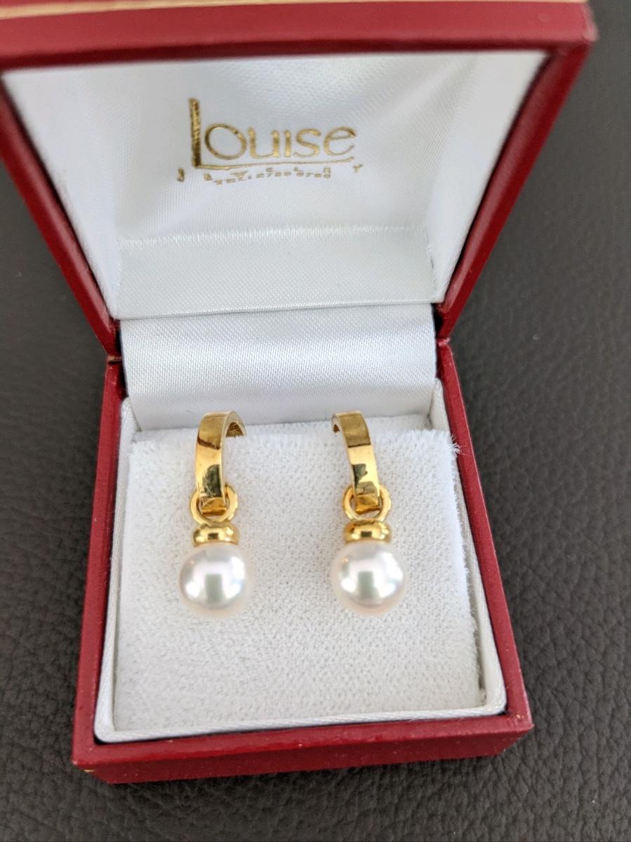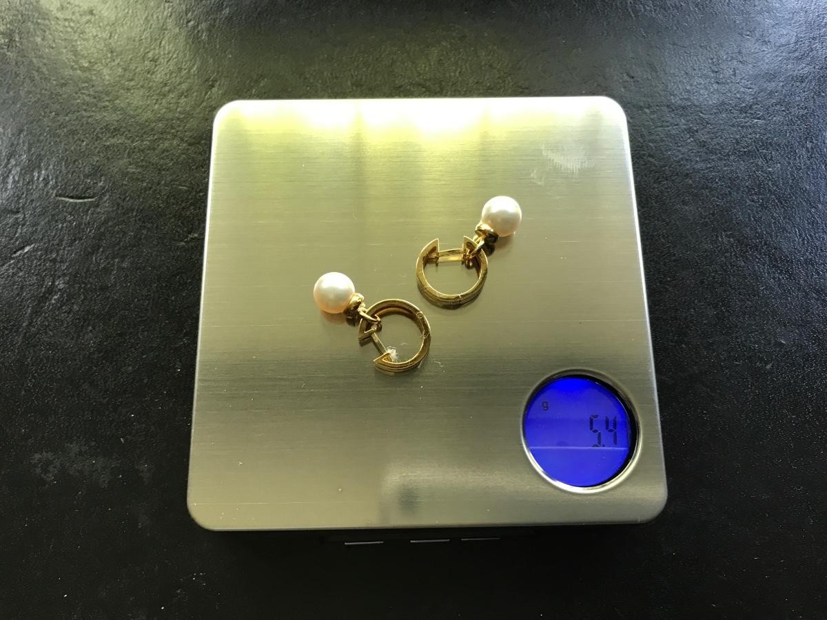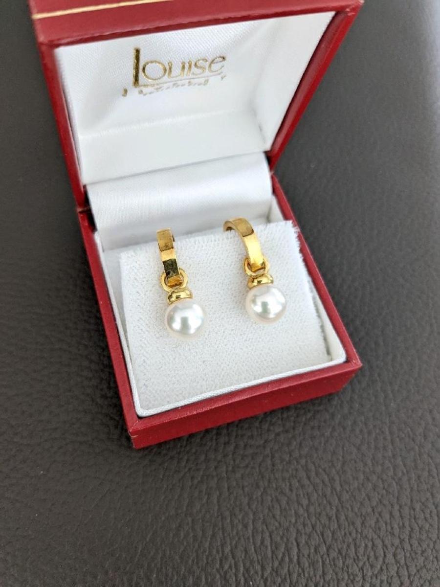 Hoop ear rings in gold with cultured pearls 5.4 grams