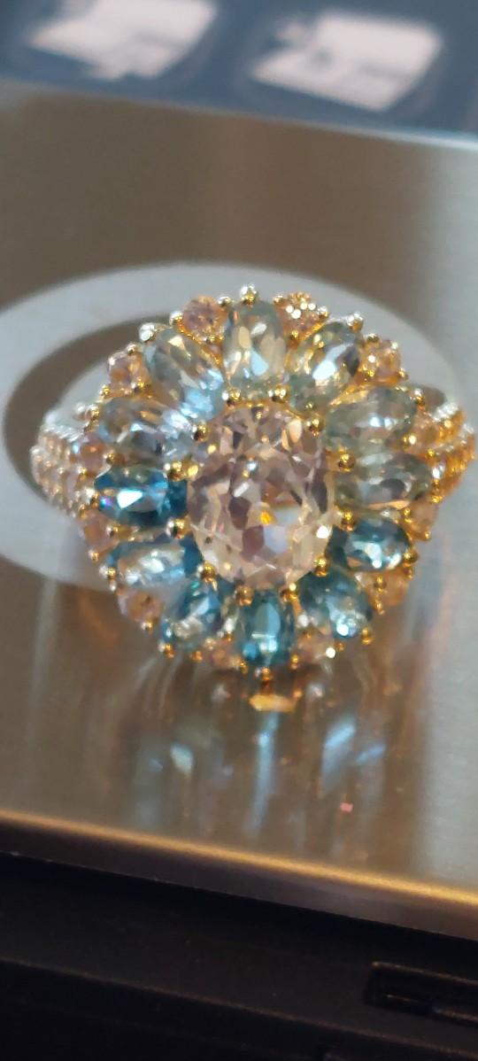 18kt Yellow Gold Plated Blue Topaz Created White Sapphire Ring Sz 7
