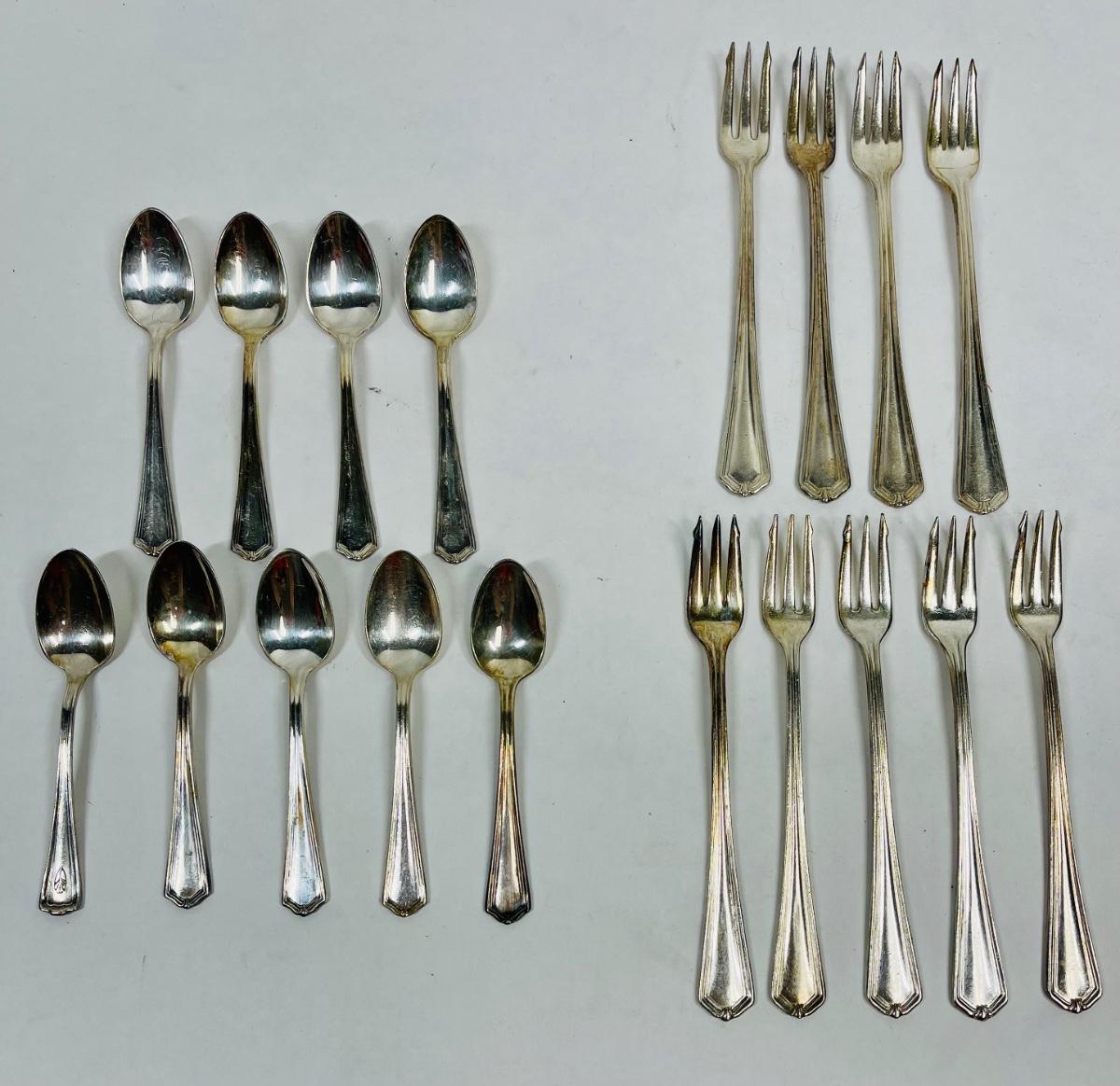 9 spoons and 9 forks. From International Service Silver Company. In good condition.