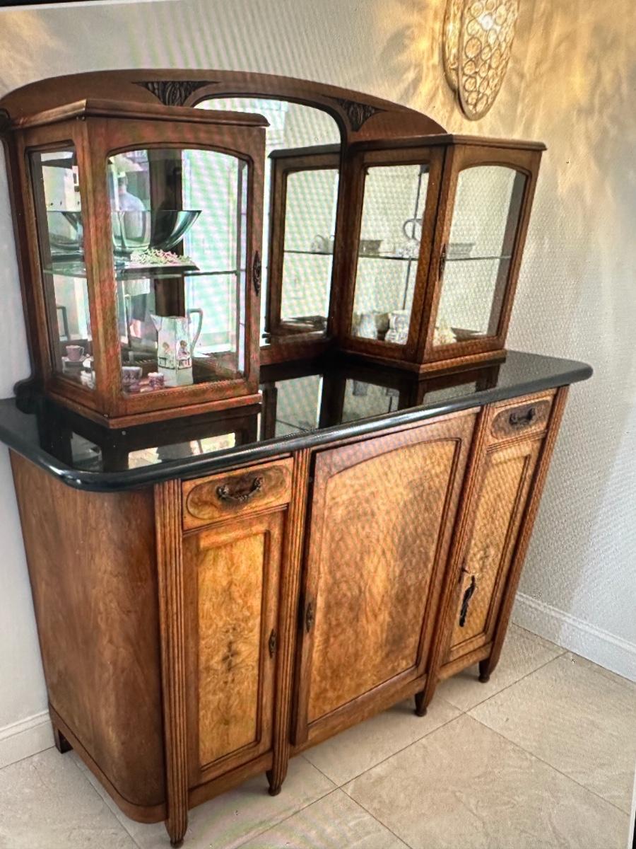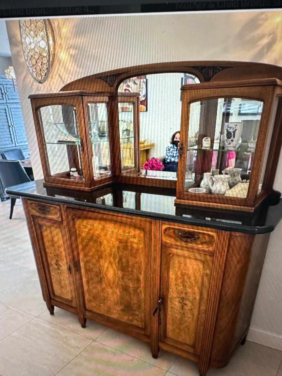 19th Century commode 64 x 78 x36 with black marble top and key to open the doors