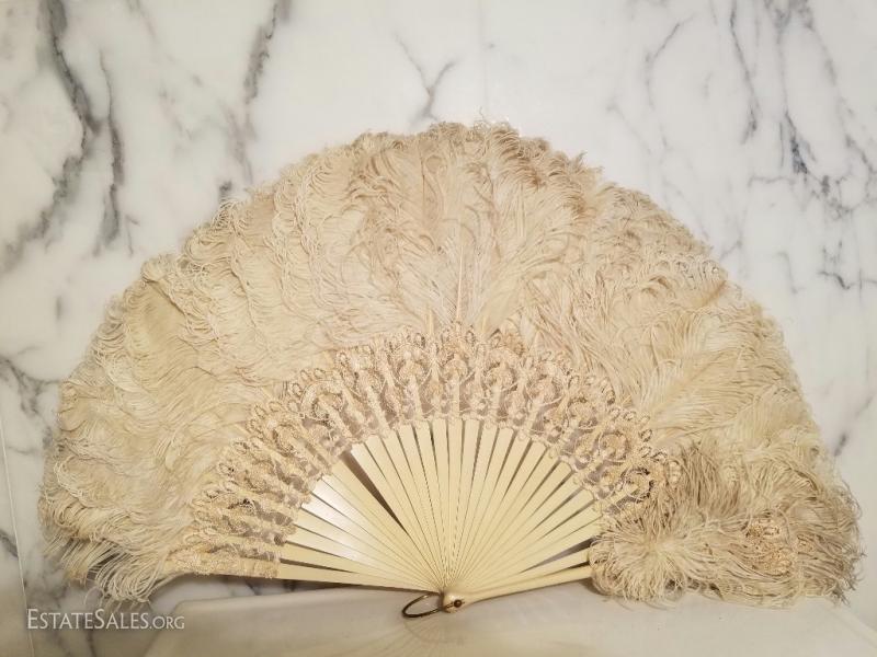 Amazingly rare French fan from a private estate of an Actor in Toulouse France.. Eggshell in coloration , bone colored stick and old french lace.. Drop dead gorgeous is this fan. from the 1890's.and in amazing antique condition.