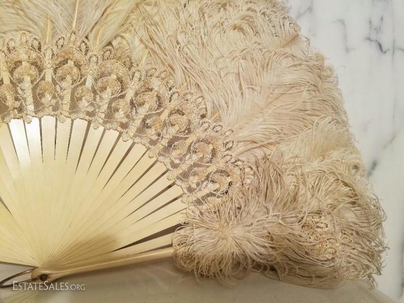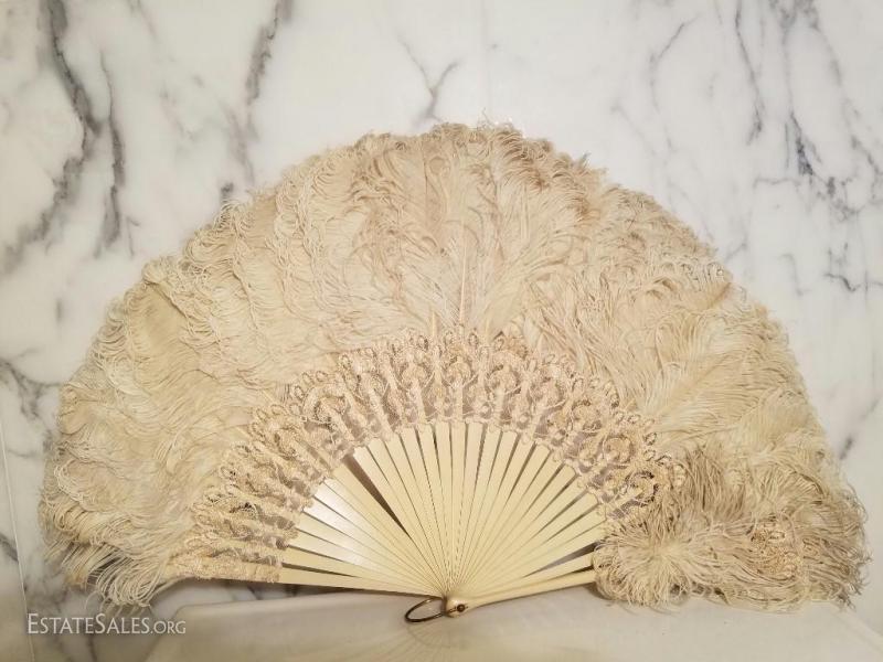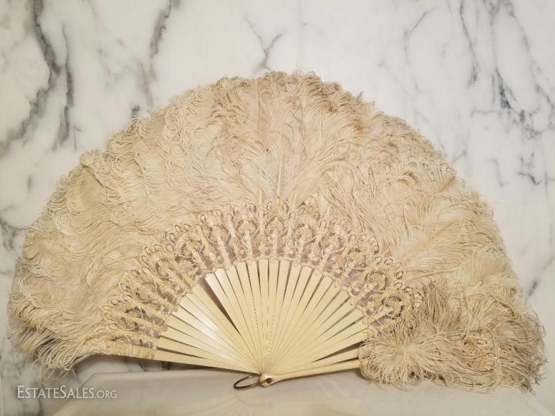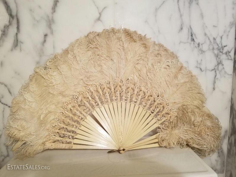 Amazingly rare French fan from a private estate of an Actor in Toulouse France.. Eggshell in coloration , bone colored stick and old french lace.. Drop dead gorgeous is this fan. from the 1890's.and in amazing antique condition.