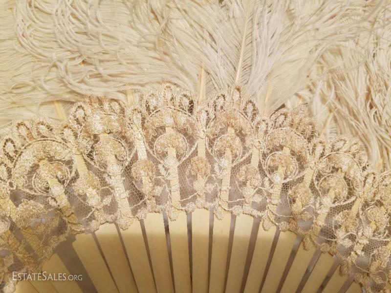 Amazingly rare French fan from a private estate of an Actor in Toulouse France.. Eggshell in coloration , bone colored stick and old french lace.. Drop dead gorgeous is this fan. from the 1890's.and in amazing antique condition.