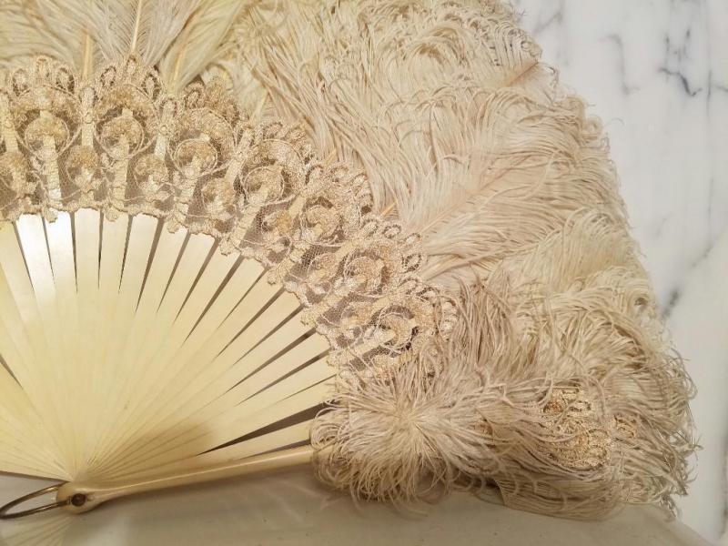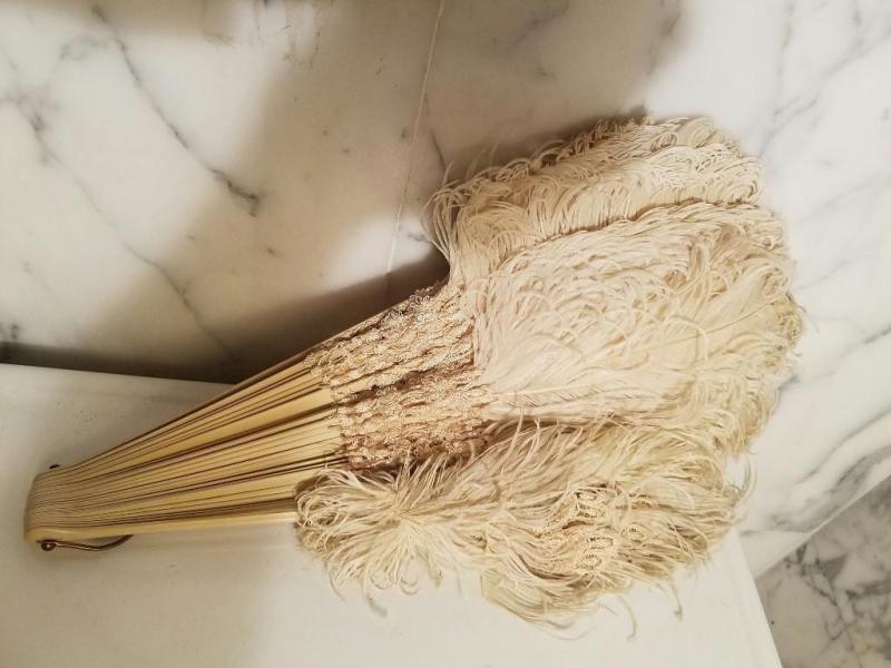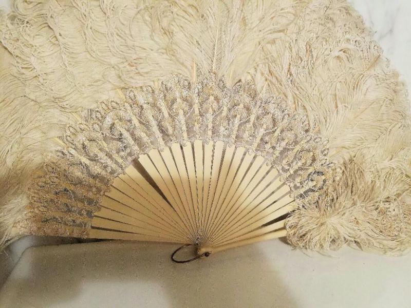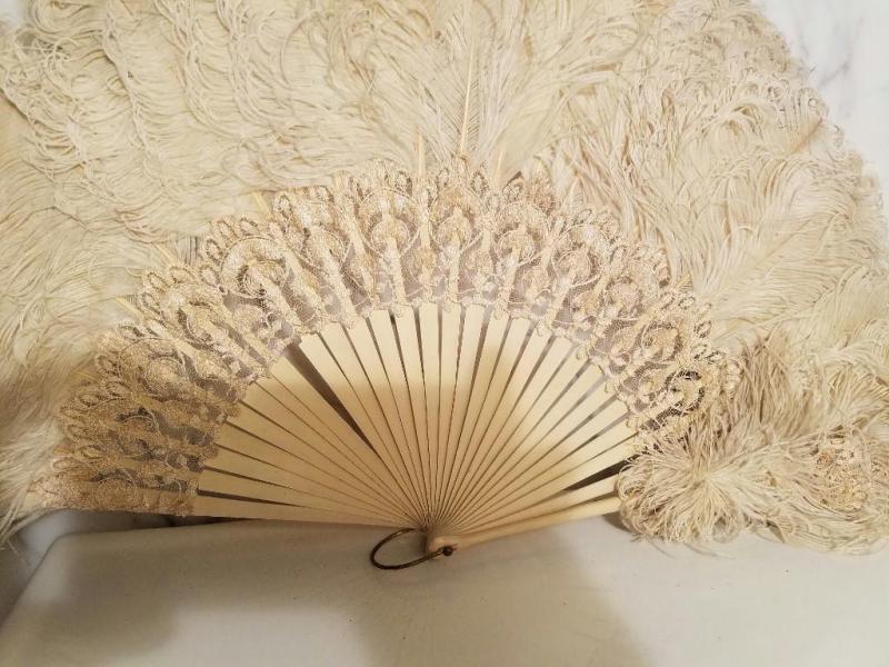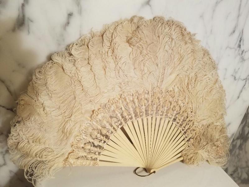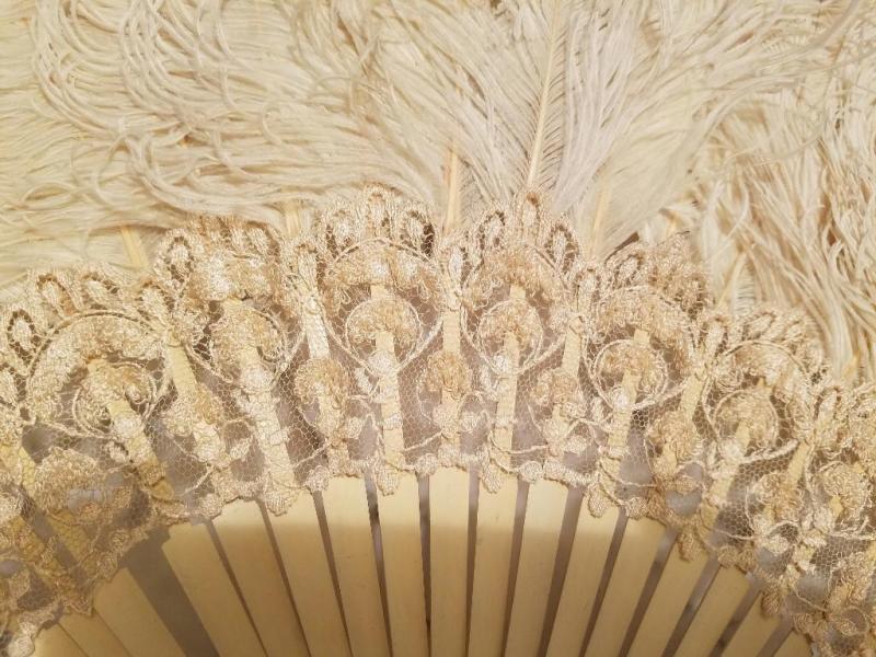18th century Victorian French Ostrich feather large fan lace/bronze tone loop